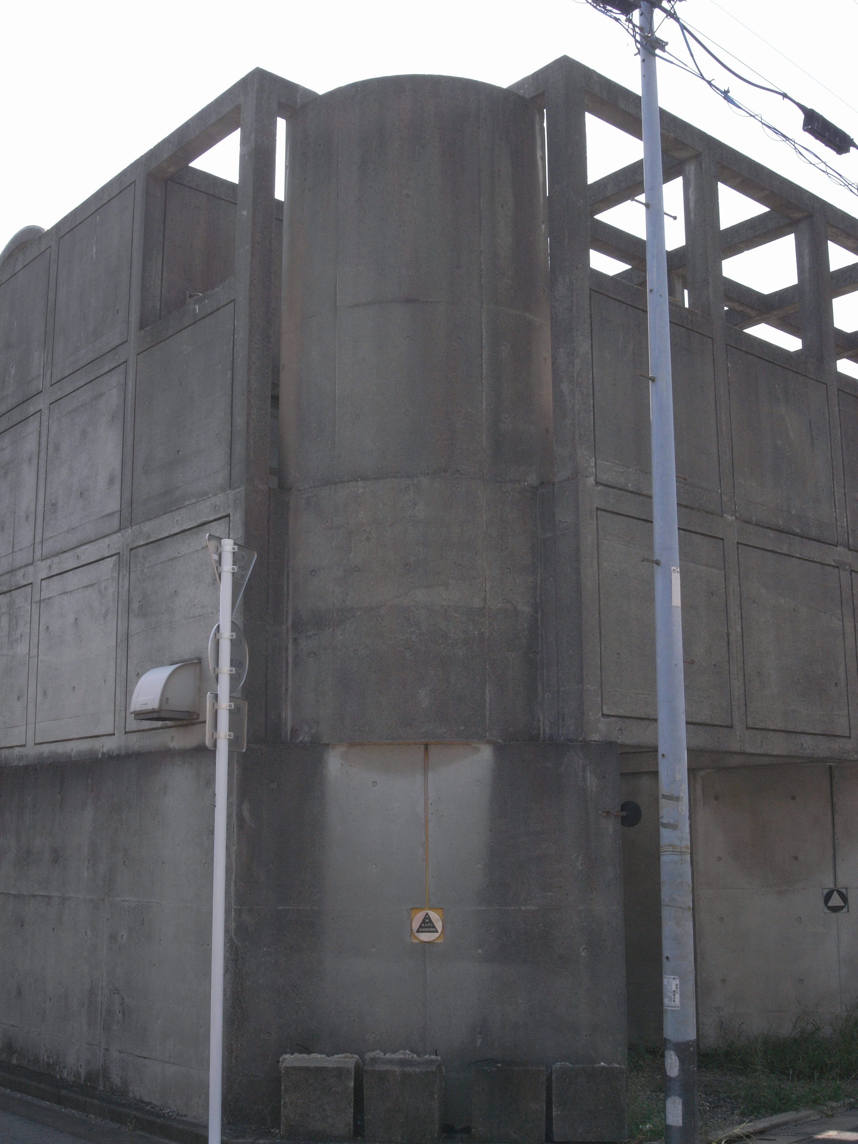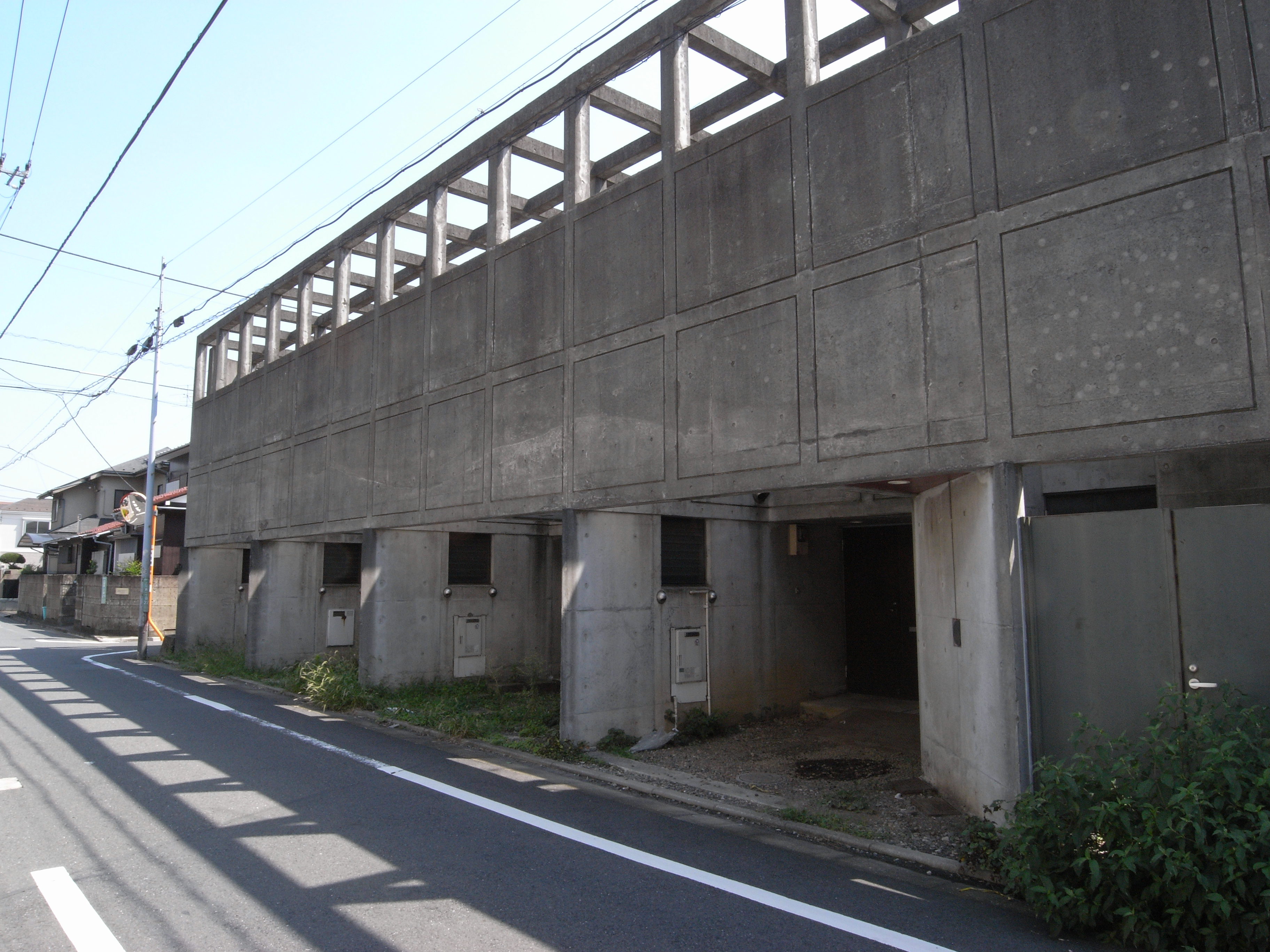 도로레벨보다 2.1m높은 곳에 라인을 설정하여, 하부와 상부의 디자인을 이질적인 것으로하여, 하부는 담장(塀)을 의식, 상부는 구조물을 의식한 그리드 패턴을 기조로 디자인했다. 북쪽 도로로 개방 된 문을 빠져 나가면 전정(前庭)에 들어간다.