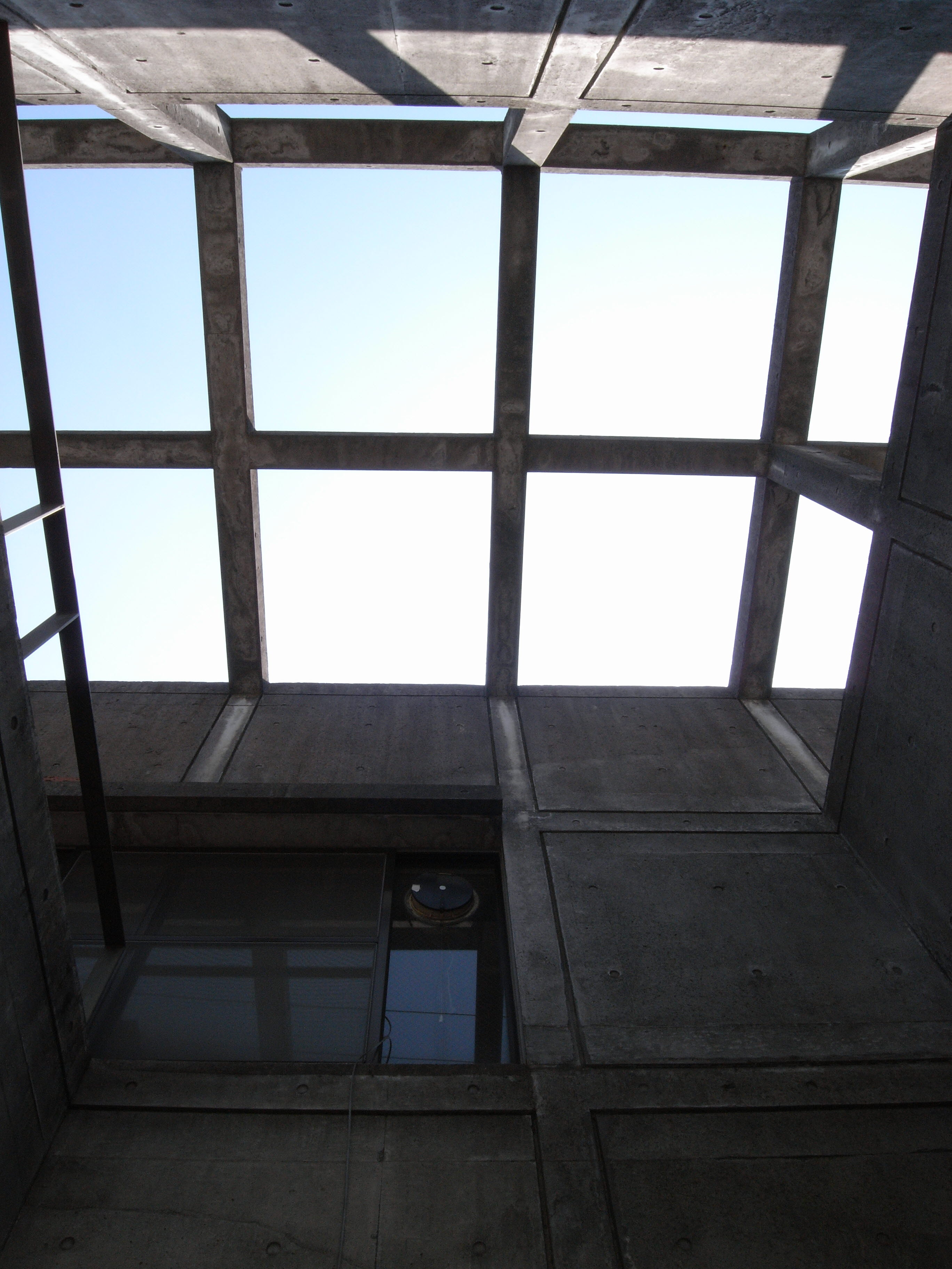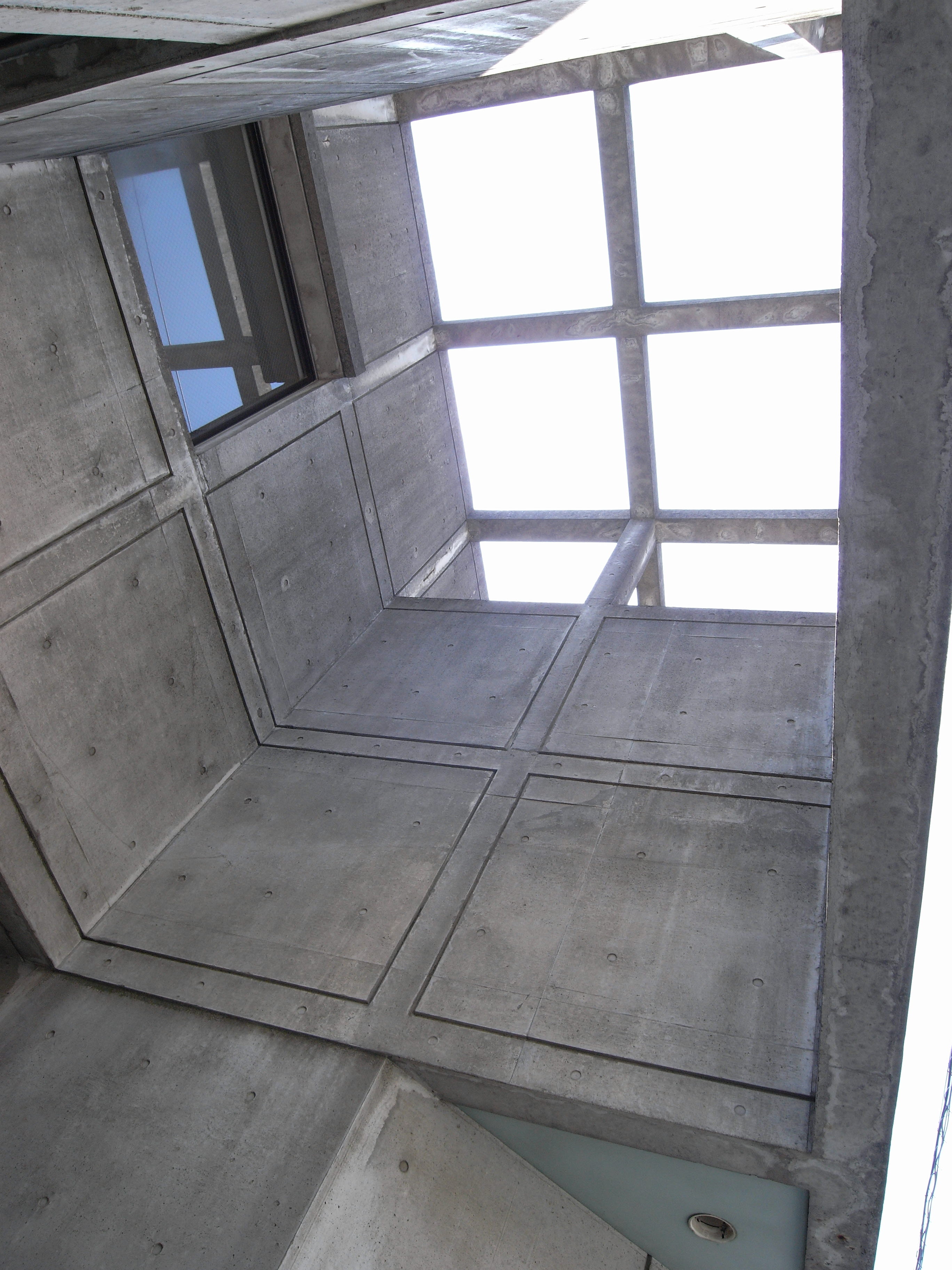마찬가지로 전정(前庭) 상부에는 그리드 패턴의 프레임을 설치하여 콘크리트 벽에 그림자를 떨어뜨리게하여, 전정(前庭)을 부드러운 빛이 충만한 공간이 될 수 있도록 하였다.