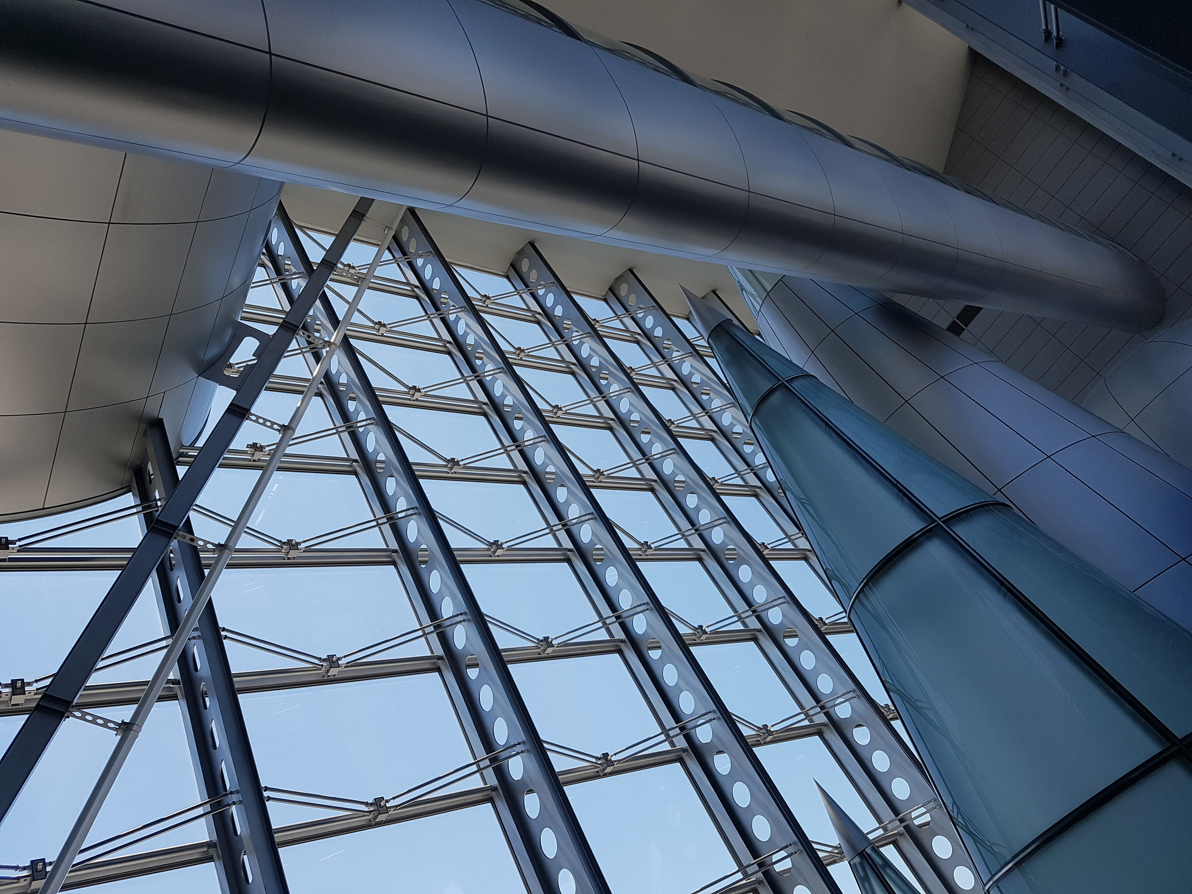이들의 제기능을 합리적인 공간구성으로 통합하는 것을 목적으로 직방형의 대공간인 메인 전시장을 북측에 배치하고, 남측의 세장형 1스팬에 사무실, 회의실을 6개층에 적층시켜 배치했다.