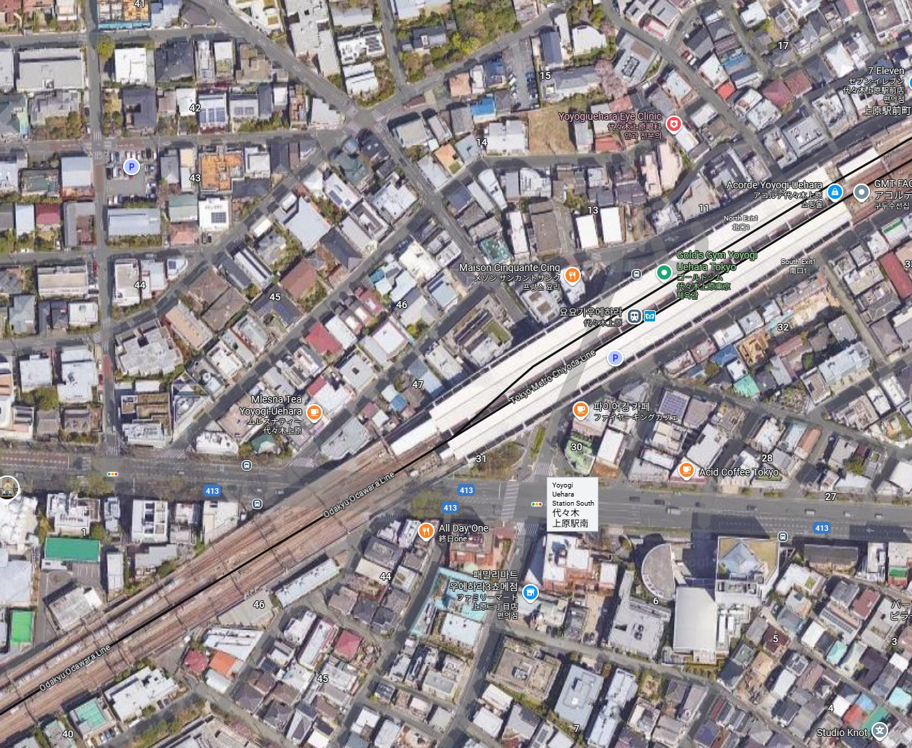 본 계획 지역인 요요기우에하라(代々木上原) 의 부지도 북측의 고급저택군과 울창한 녹지를 앞에 두고, 2층 높이에서도 그 조망을 향유하는 것이 가능했다.