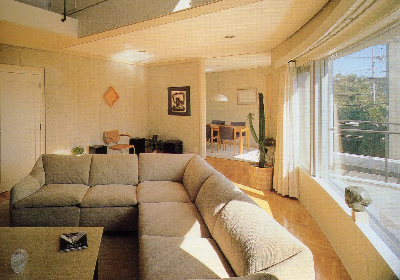 부엌이나 욕실, 세면실 등도 나름대로 계획한 결과, 거실,식당을 포함하여 다각형(多角形)이나 곡면(曲面)을 가진 공간구성으로 되었다.