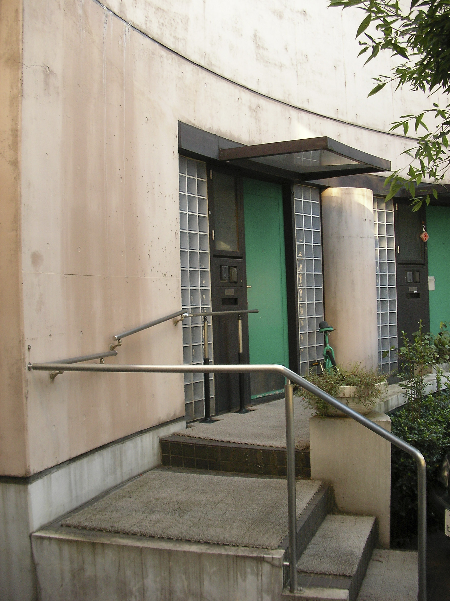 도로측에는 두그루 밖에 남기지 못했지만, 원풍경(原風景)을 소중히 여기고 싶은 마음을 담았다. 법규제(法規制)에 의해 지금도 주변은 맨션이 건축되지 않는 주거지 환경을 유지하고 있다. 이러한 주거환경을 되도록이면 손상하지 않도록