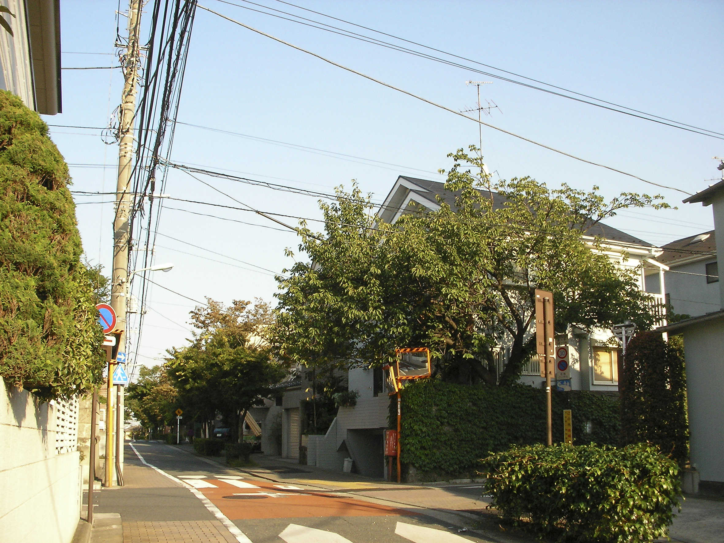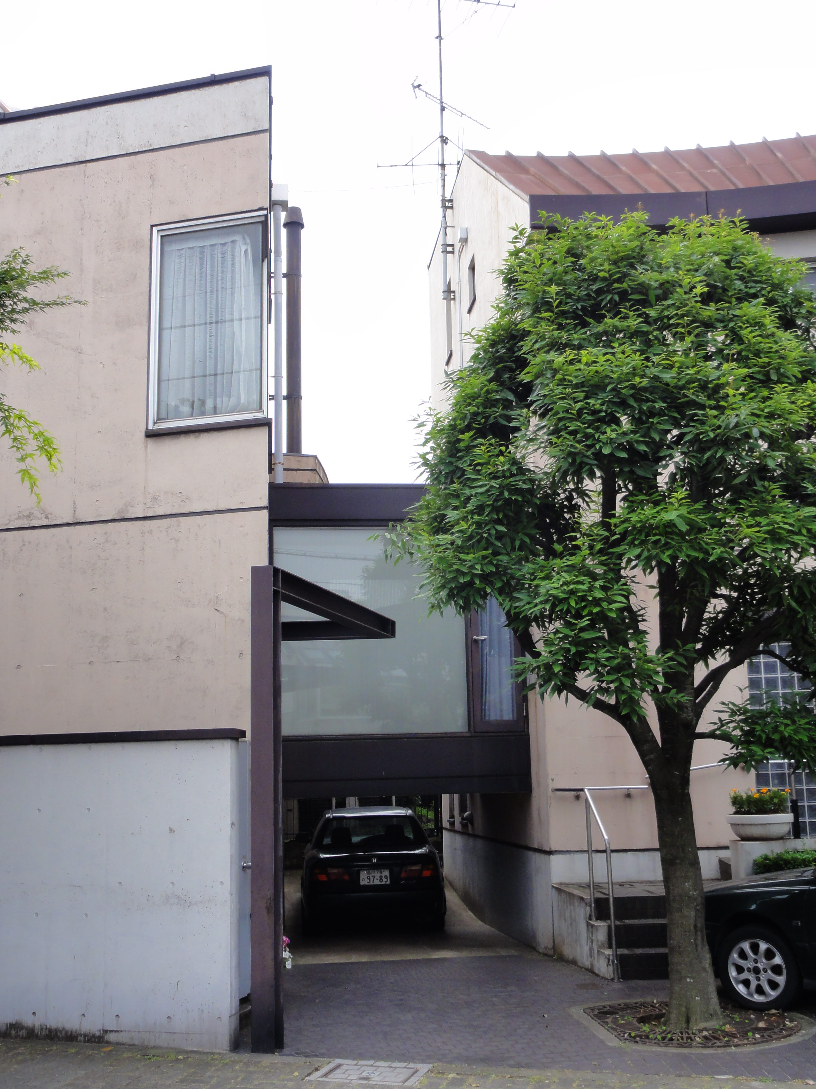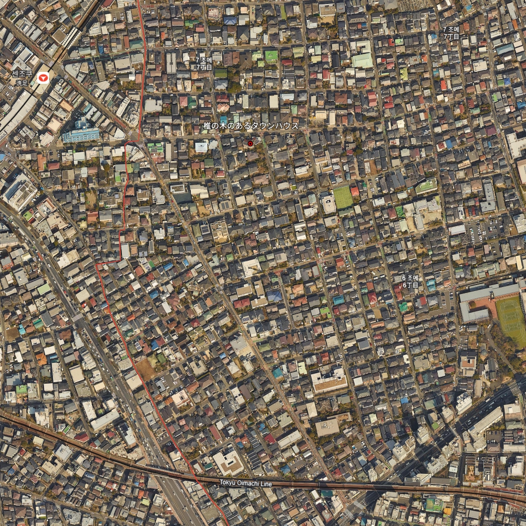 도로측에는 두그루 밖에 남기지 못했지만, 원풍경(原風景)을 소중히 여기고 싶은 마음을 담았다. 법규제(法規制)에 의해 지금도 주변은 맨션이 건축되지 않는 주거지 환경을 유지하고 있다. 이러한 주거환경을 되도록이면 손상하지 않도록