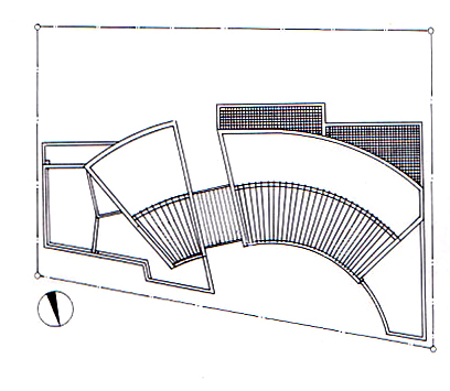 하지만 이러한 형태들은 특별히 의도한 설계라기 보단, 에스키스의 자연스런 흐름 중에 나타난 것이라고 할 수 있다. 완성 후, 식당에서 거실의 곡면(曲面)과 난로가 있는 사각형의 알코브(alcove)를 바라보고 있으면, 너무 세부 디테일까지 일일히 집착하지 않으면서, 솔직하고 융통성있는 부드러운 주거공간을 콘크리트로 만들었다고 생각한다.