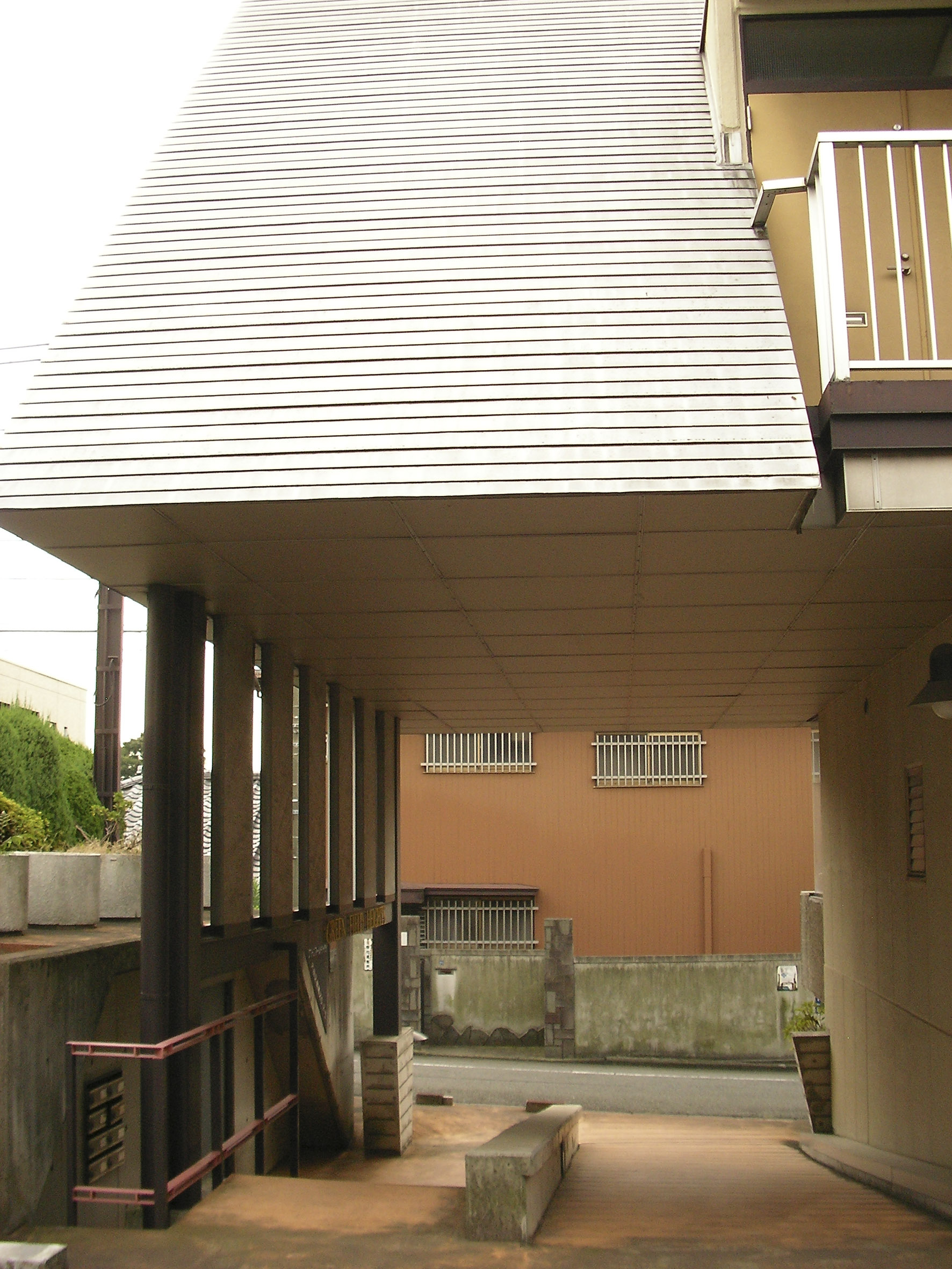 중정은 공유사회(共有の社会)를 의식하여 계획한 장치이며, 중정을 향해 돌출된 외부계단이 이러한 중정을 특별한 것으로 인식케하기 위한 포인트였다.