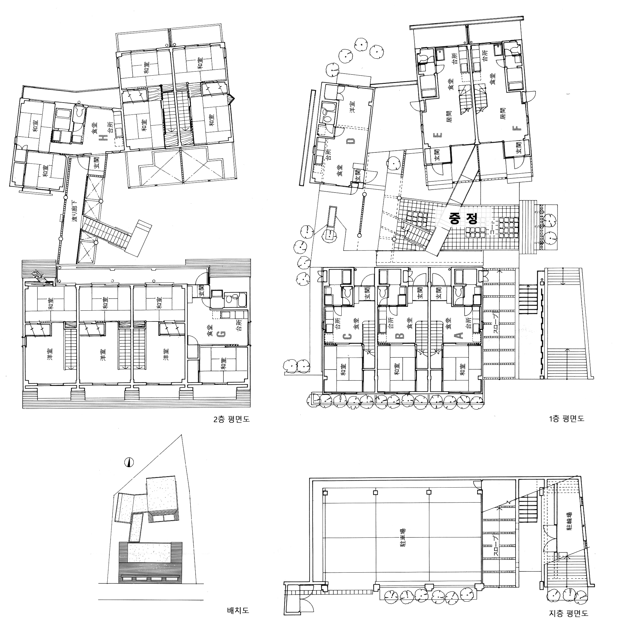 지금 생각하면 각 주호의 내부공간에 대해서도 좀 더 적극적으로 제안을 했었으면 하는 생각도 들지만, 결국 일본식(和式)의 주거형식(二間続き・押入れ付き)을 대체하지는 못했다.