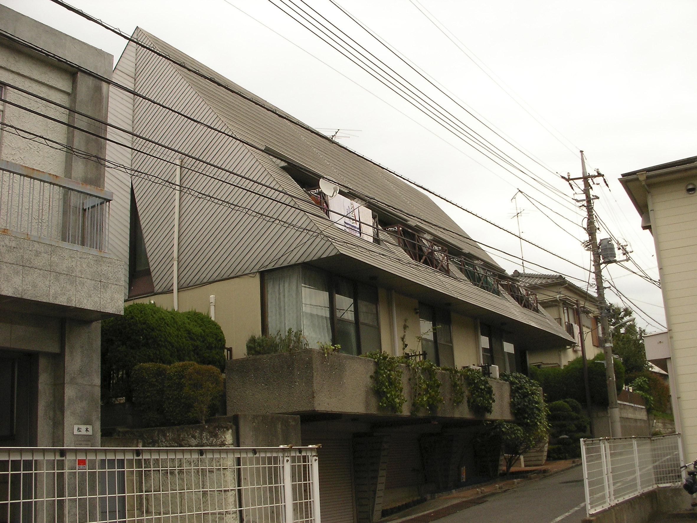 조형적(造形的)으로는 가로경관(街並み) 형성에 일익을 담당하기 위해서 도로에 면한 단차(段差)를 주차공간으로서 이용하였으며, 그 상부에는 메조넷 형식의 주호를 배치하였다.