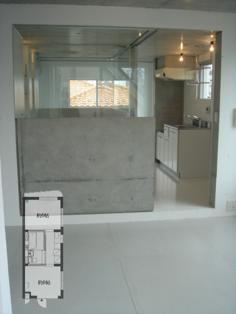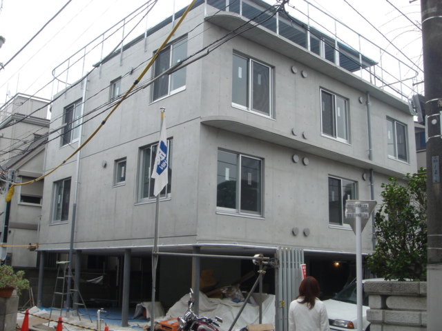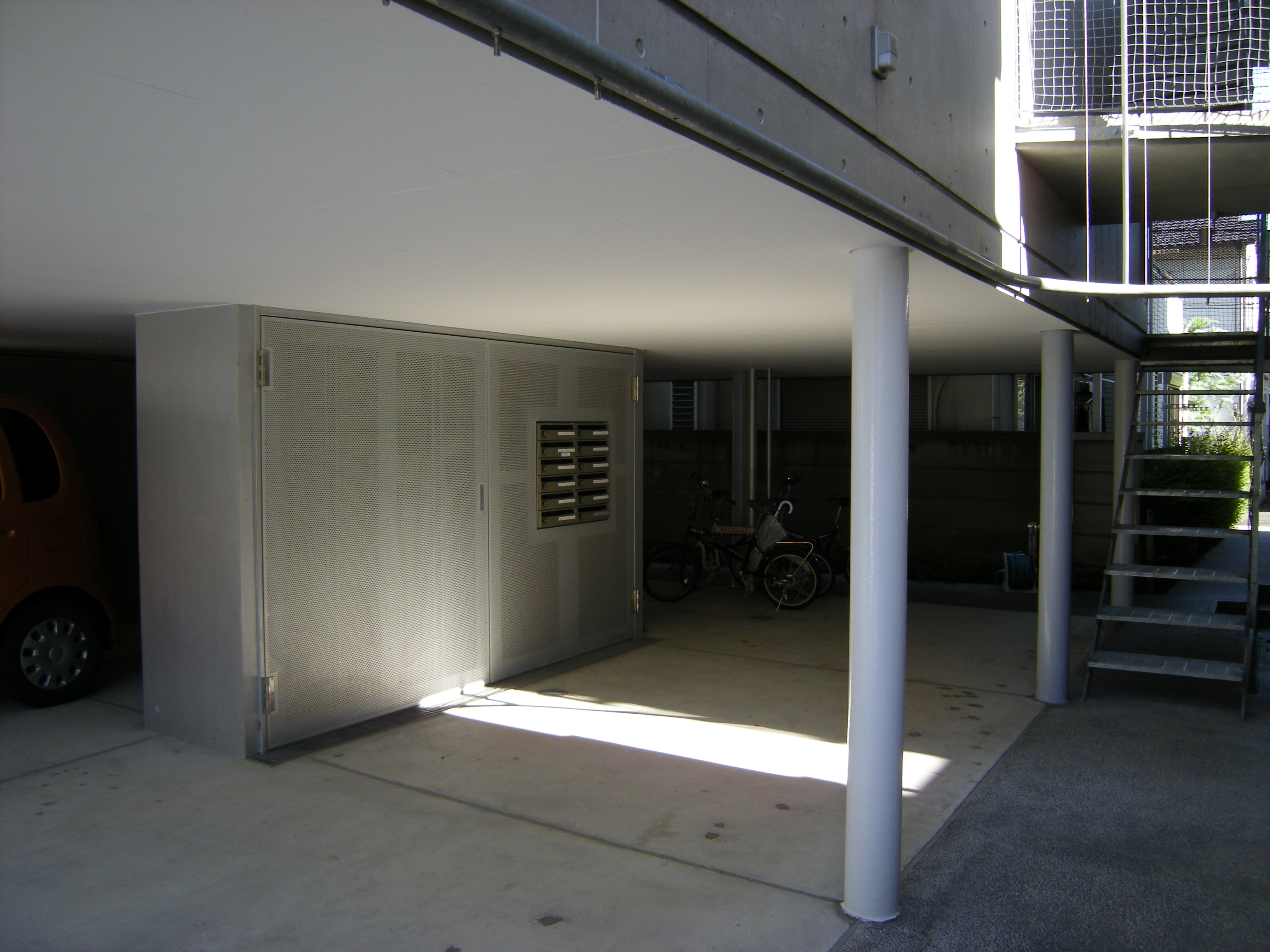 | 주요외장 | 지붕:북측동 - 塩化ビニルシート防水 남측동 - タケイ進化コンクリート法防水(タケイ工業) 외벽:コンクリート化粧打ち放しの上撥水剤塗布 개구부 : アルミサッシ、鉄製扉(三協立山アルミ) 외부시설 : 玉砂利洗い出し仕上げ、コンクリート金ゴテ仕上げ |