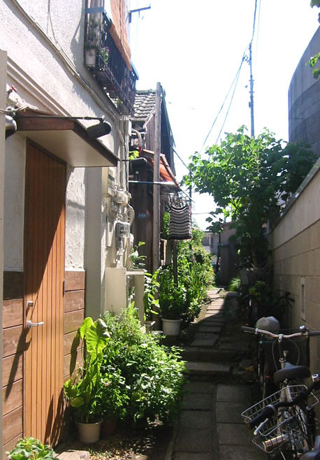 건물 사이에 끼인 수직의 사잇공간(隙間)이 골목길(路地)이 되면서, 지면과 건물에 끼인 수평으로 확장되는 이 사잇공간은 길과 이어진 <광장 골목길(広場路地)>이라고도 부를 수 있는 공간이다.