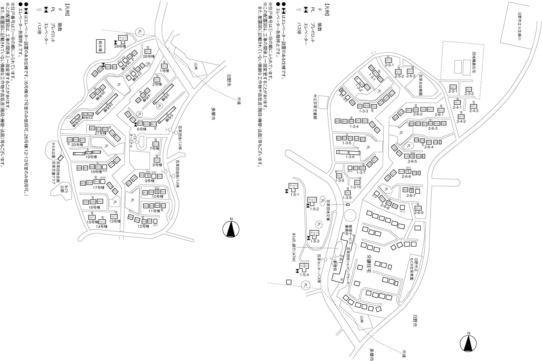 경사지 지형에 어울리도록 탑상형(塔状型) 고층주동, 계단실 분리형(分離型)의 중층(中層)주동, 상하전후로 주동 측면벽면(妻側)을 엇갈리게 하는 주동 등이 특징이다.