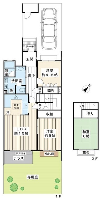 | 주호구성 | 3LDK, 2016년 현재 매매가 4,180만엔, 전유(専有)면적 85.3㎡, 전용(専用)정원(69㎡) 및 주차장 제공 |