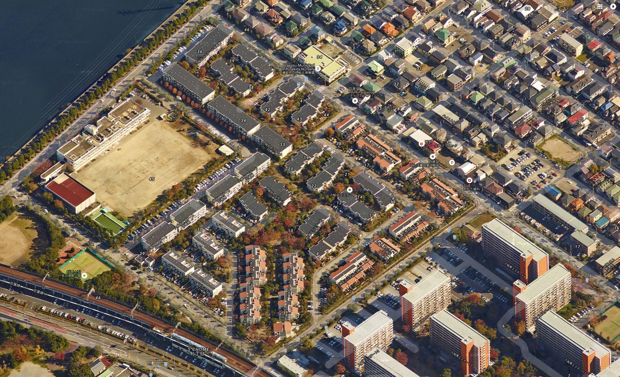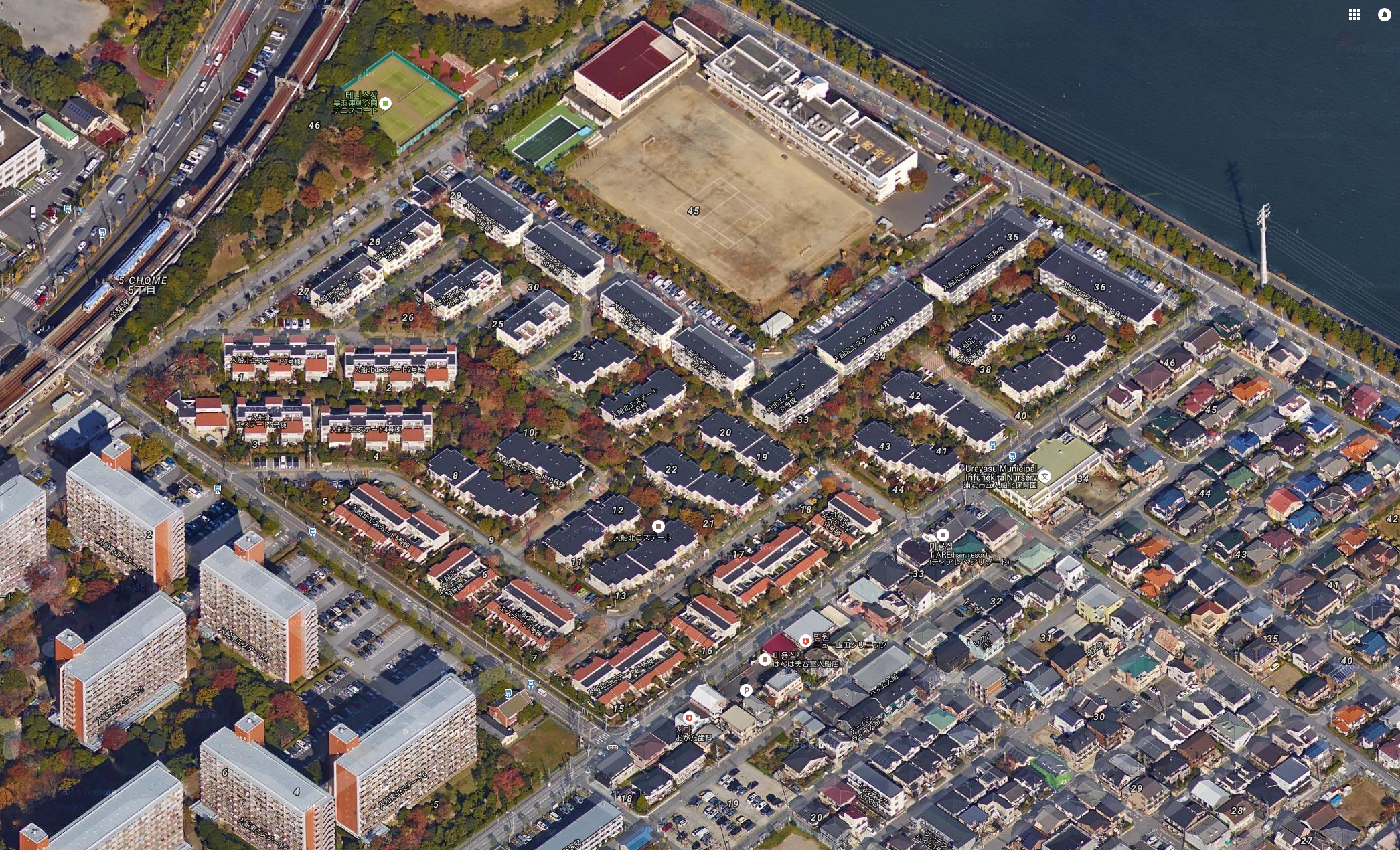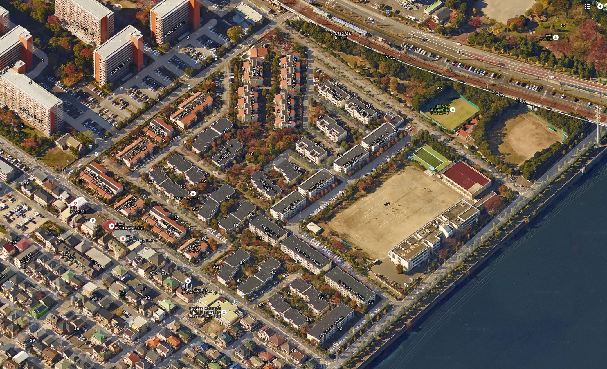 우라야스시(浦安市)는 집합주택 비율이 약 80%에 가까운 주택지로 이리후네키타(入船北エステート) 단지도 해안 간척지(海面埋立地)를 택지조성한 곳에 개발된 단지다.