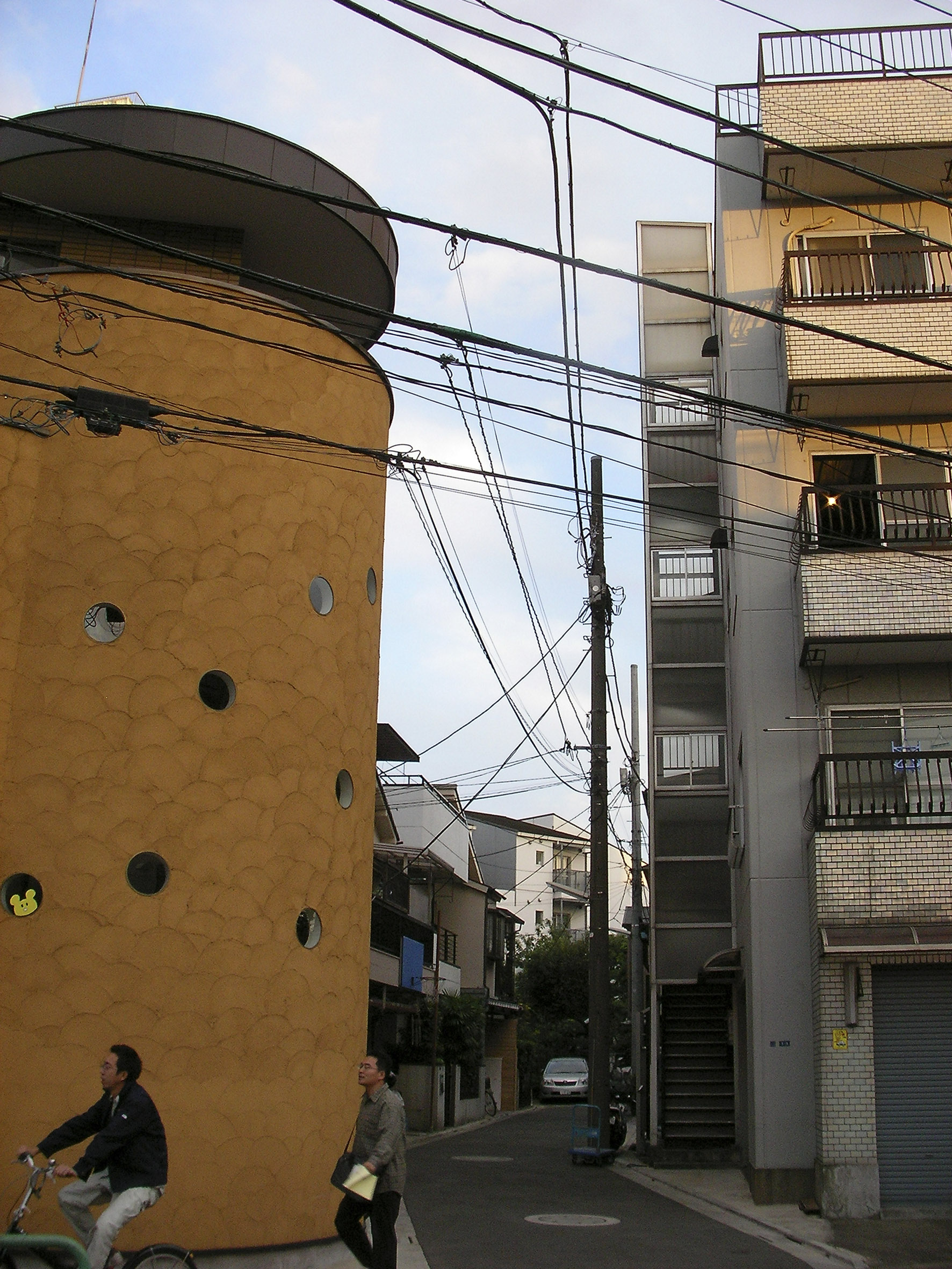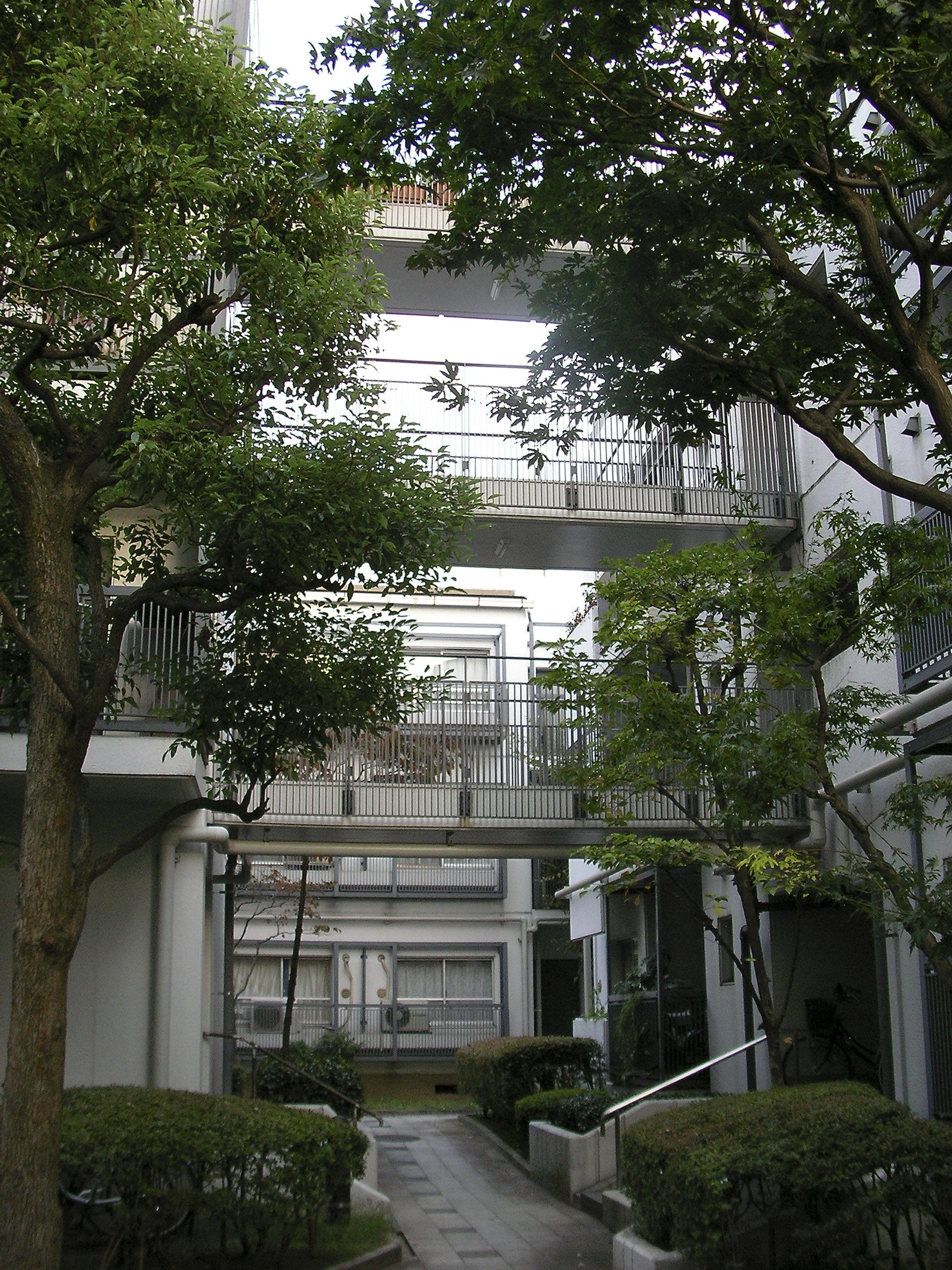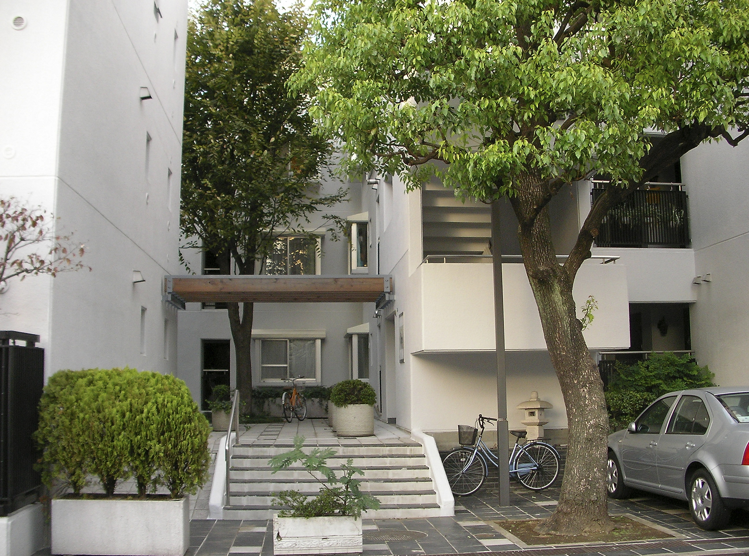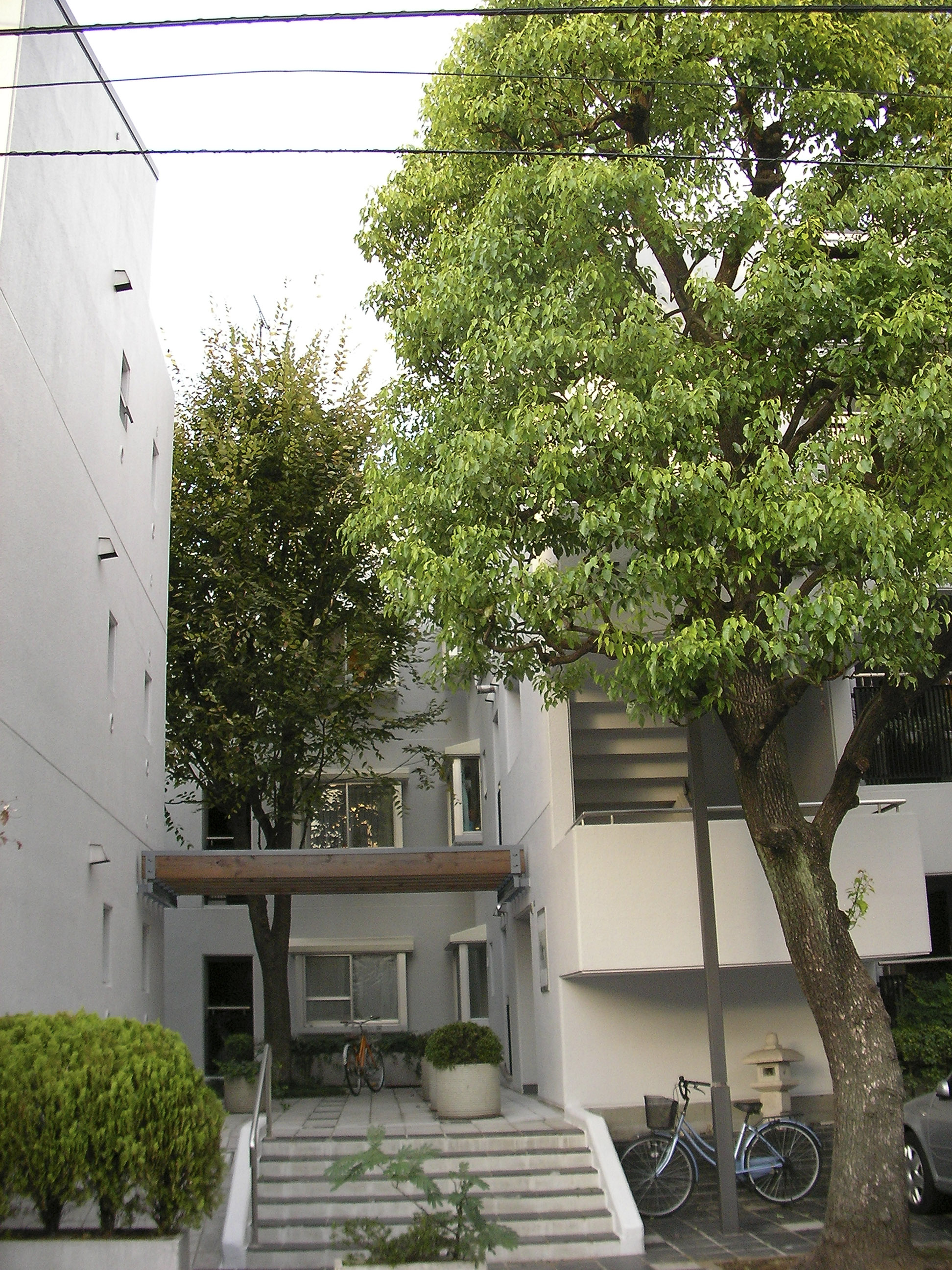 전술한 빌라 시리즈에서도 시도했던 수법의 연장선으로서, 이러한 형태에 의해 상층부의 주호까지의 어프로치를 미니가로화(ミニ街路化), 중첩된 로지(路地≒골목길)공간으로서 중정 공간과의 관계성을 강화시켜, 외부공간으로서의 개방성을 높혔다.