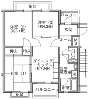 | 주호평면 예 | 3DK, 109,100엔/월 |