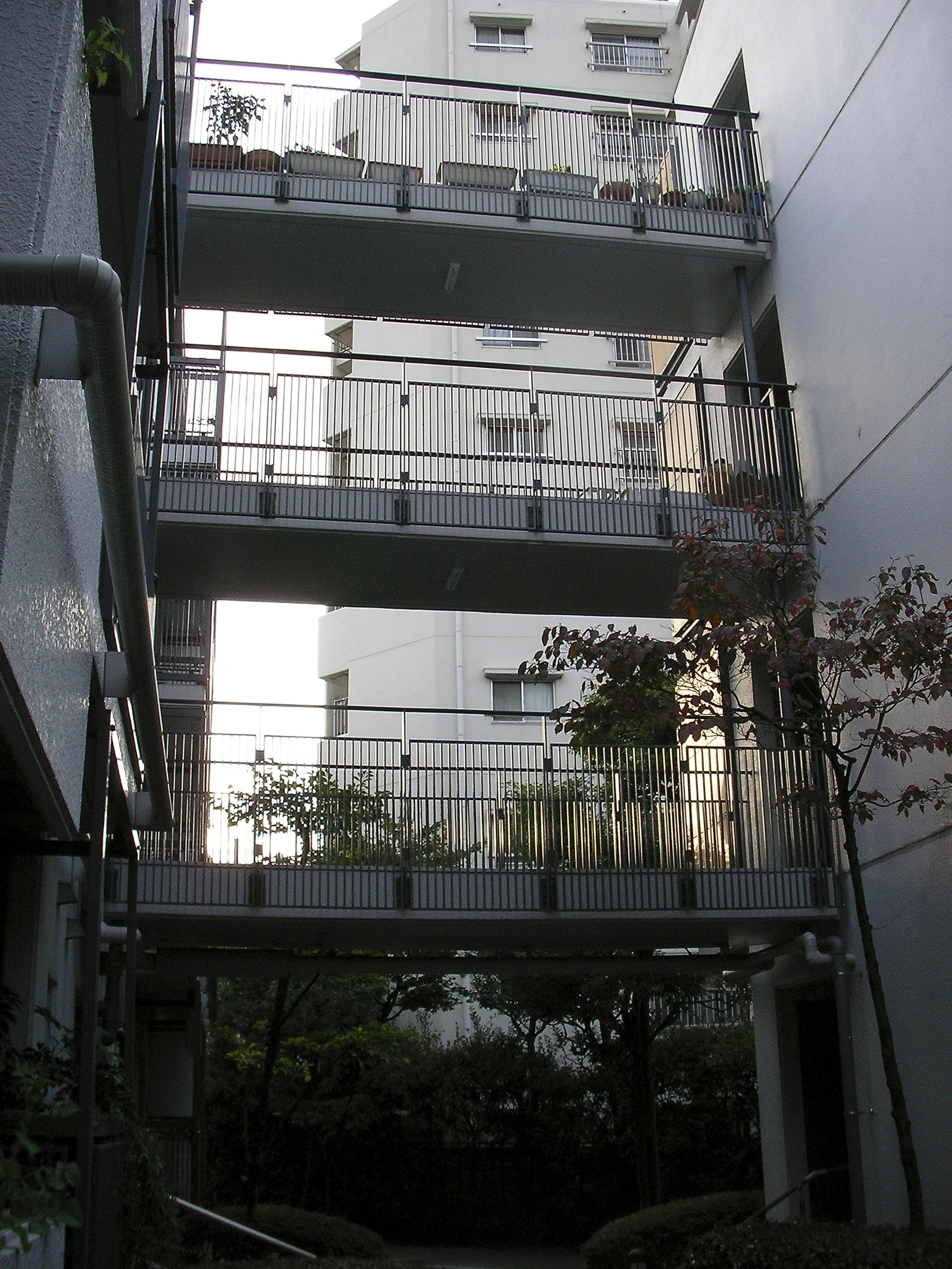 발코니에서는, 난간부분은 주호의 실내외의 시선의 투시성을 공유하는 요소인 동시에 어린아이의 낙하방지 등을 고려하여 버티컬바로 설치하면서 구석의 방형 난간기둥을 상방으로까지 연장시켜 서로 연결시켜 벽으로부터 독립된 요소로 인식되게 하였다.