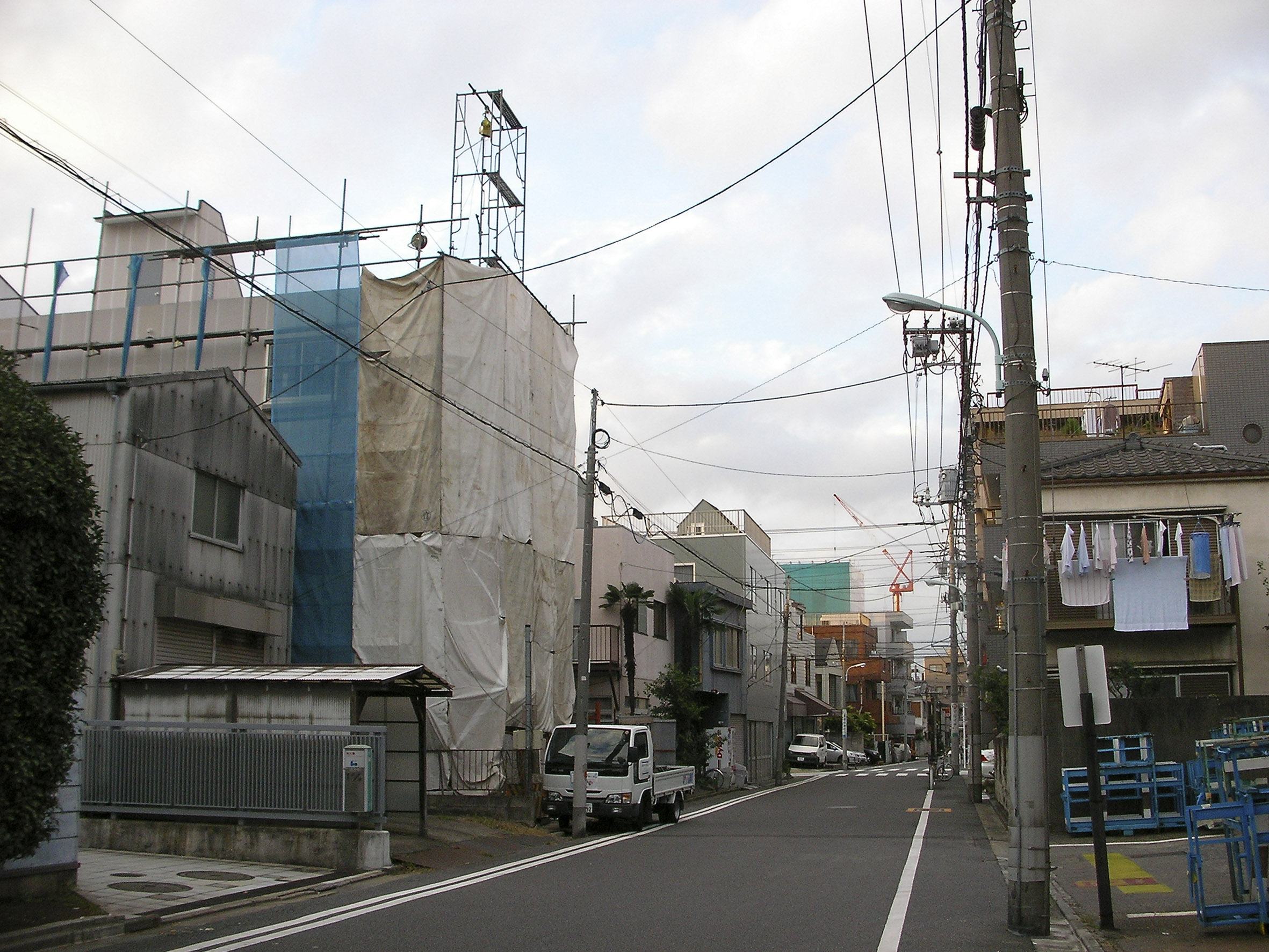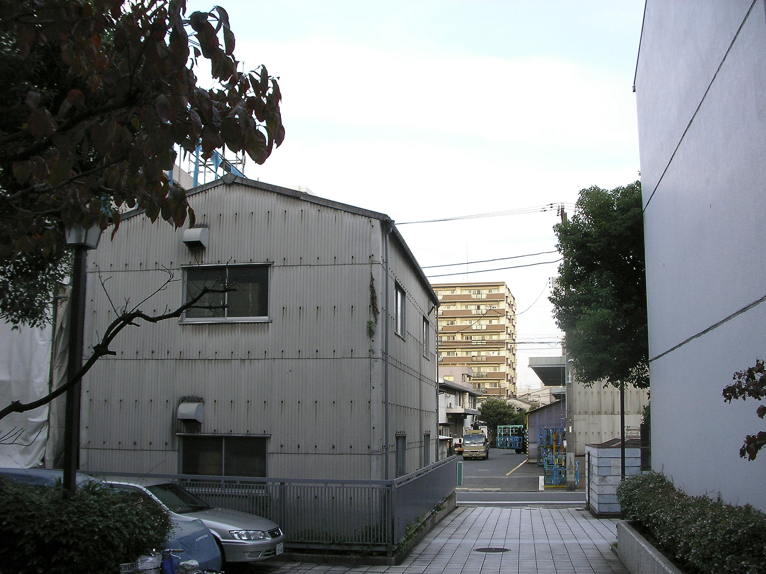0.5ha 면적을 가지는 부지는, 부분 부분 외부 도로와 접하고 북단(北端)은 아동공원, 남측 일부는 운하(運河)의 수로에 접하면서, 부지 외주 경계선의 과반은 인접 건물과 접하고 있는 부정형(不整形)의 형상으로 주위 가로(街路)에는 고층 맨션, 3~4층 규모의 철골조 병용주택(併用住宅), 창고, 소규모 공장, 미니개발(ミニ開発)에 의한 목조 단독주택군(群)이 늘어서 있다.