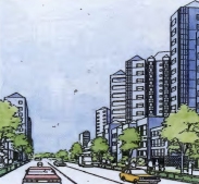 | 연속성있는 벽면이나 스카이라인(skyline) 및 주동형태의 높이의 변화를 도모하여, 원거리에서의 랜드마크(landmark), 거리모퉁이에서의 아이스탑(eyestop)으로서 기능할 수 있도록 하여, 가로경관에 매력과 변화를 줄 수 있도록 한다. | ![]() ![]() |