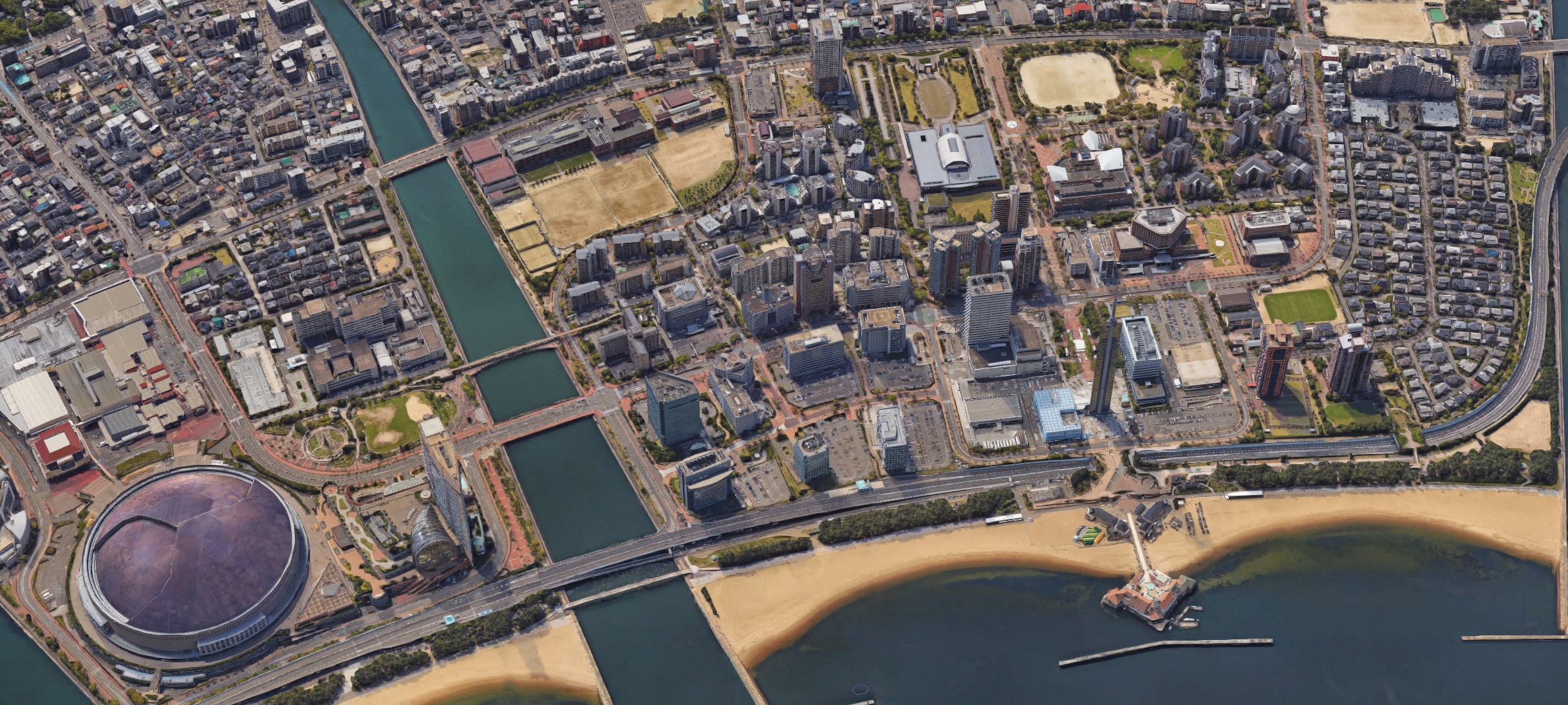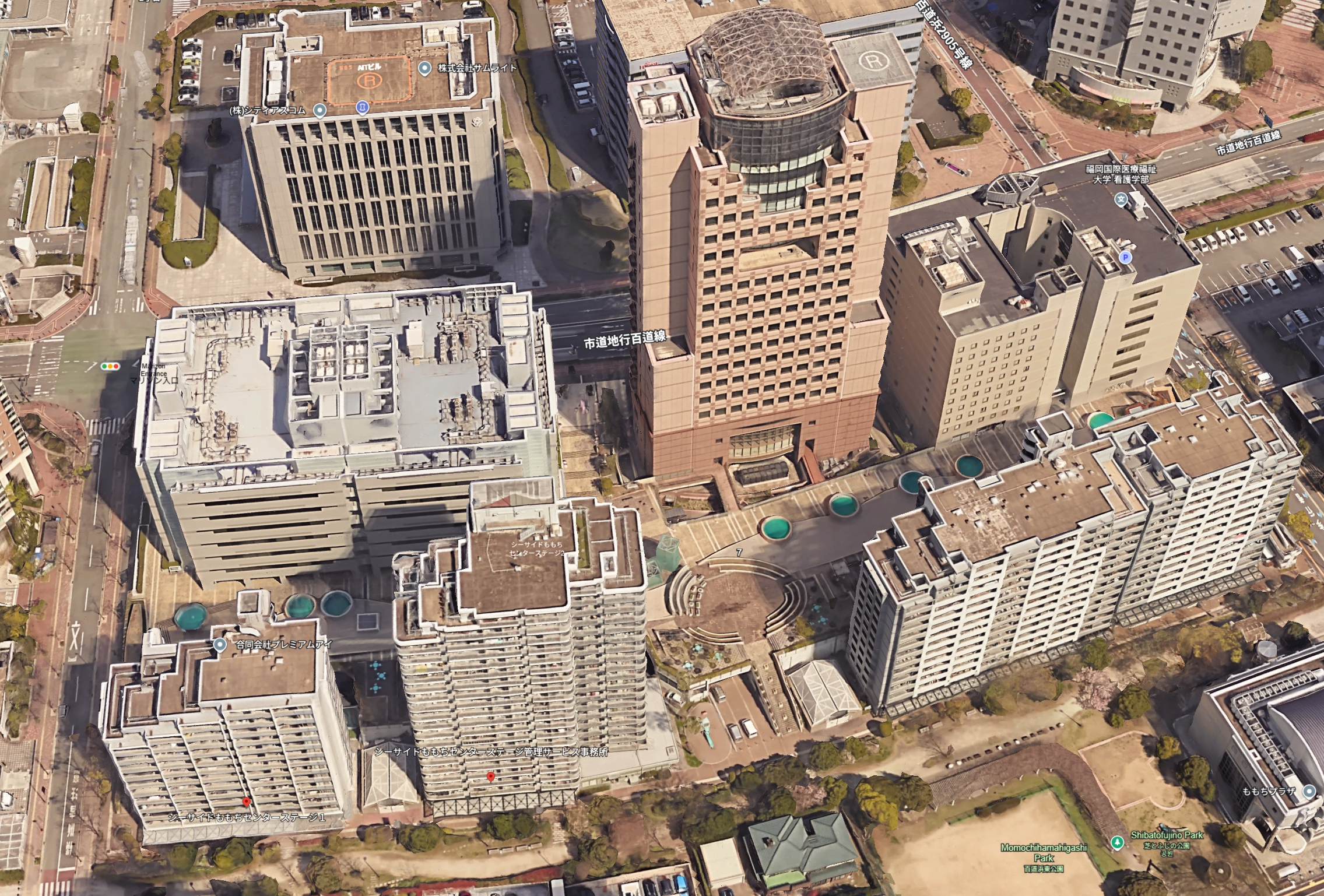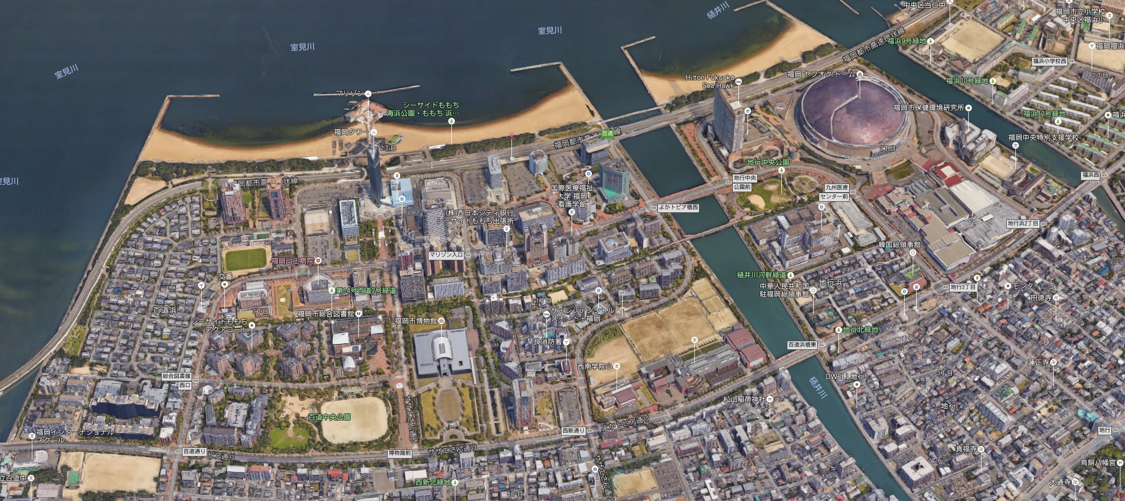 | 후쿠오카 타워(福岡タワー) | 후쿠오카시 종합도서관(福岡市総合図書館) | 후쿠오카시 박물관(福岡市博物館) | 테레비 니시니혼 사옥(TNC放送会館) |
