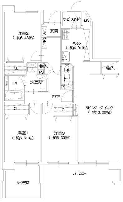 | 주호평면 예 | - 3LDK, 전유면적: 84.92㎡, 발코니:8.16㎡, 루프테라스:7.25㎡ - 3880만엔(분양),관리비:10000엔/월, 수선적립금:7800엔/월,주차장:5000/월, - 1989. |