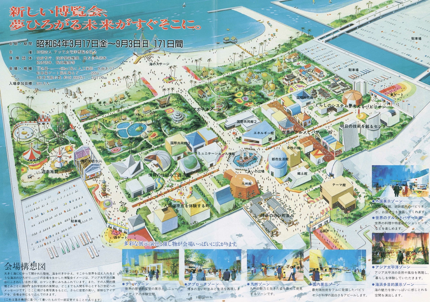 1989년 개최되었던 아시아 태평양 박람회(アジア太平洋博覧会, 1989.3.17. ~ 1989.9.3.(통칭 : 요카토피아よかトピア))가 폐막된 후, 현재의 모습으로 개발되었다.