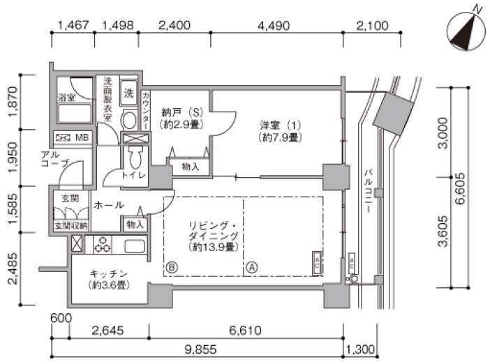 | 주호평면 예 | 1LDK+S, 전유면적:65㎡, 179,300엔/월 |