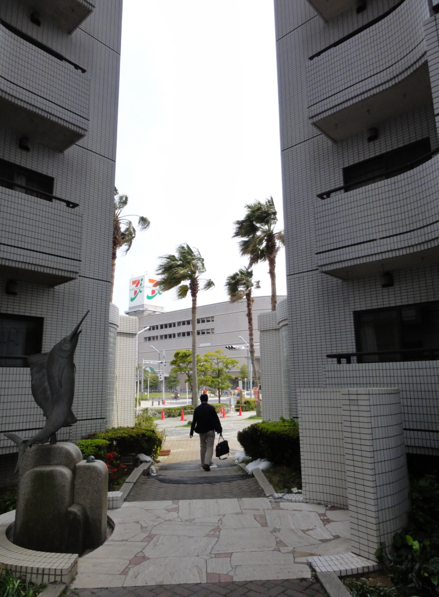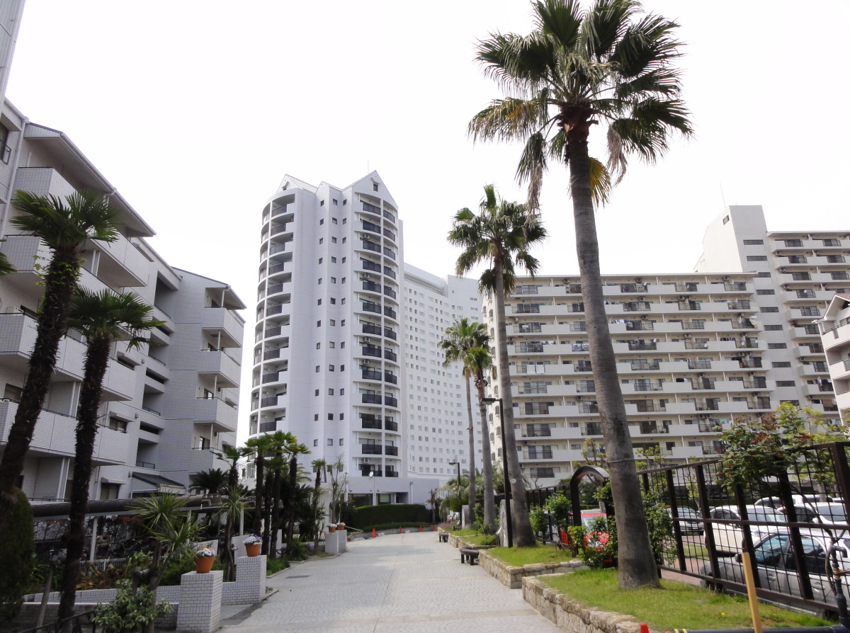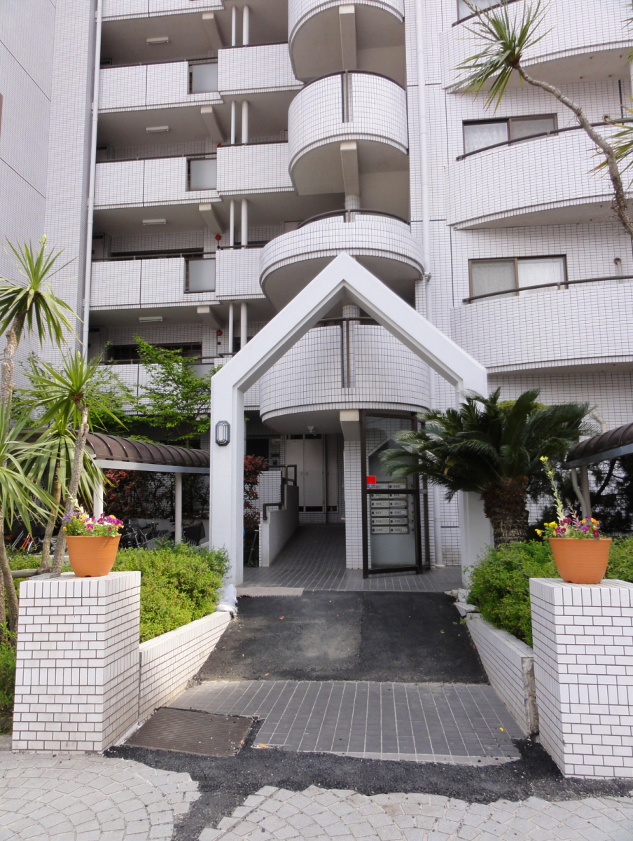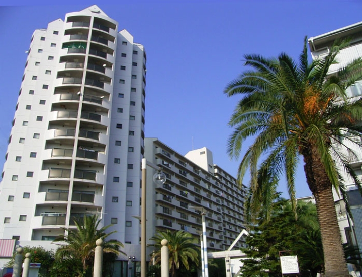 통행로에 면한 주동은 벽면을 후퇴시켜 그 사이에 조경계획에 의한 중간영역(中間領域)을 설치하는 동시에, 야자나무(カナリーヤシ)을 심어 리조트감을 자아내고 있다.