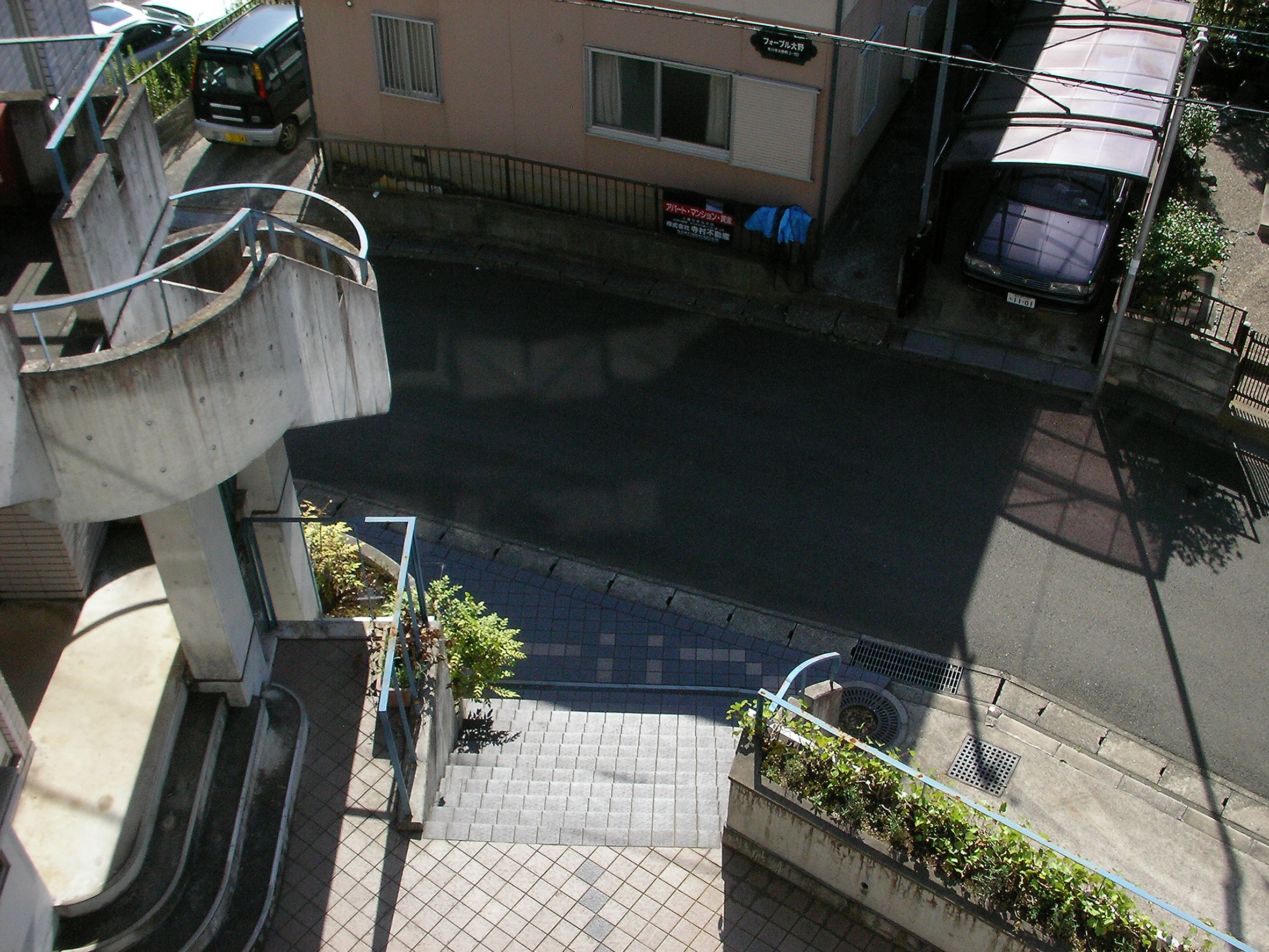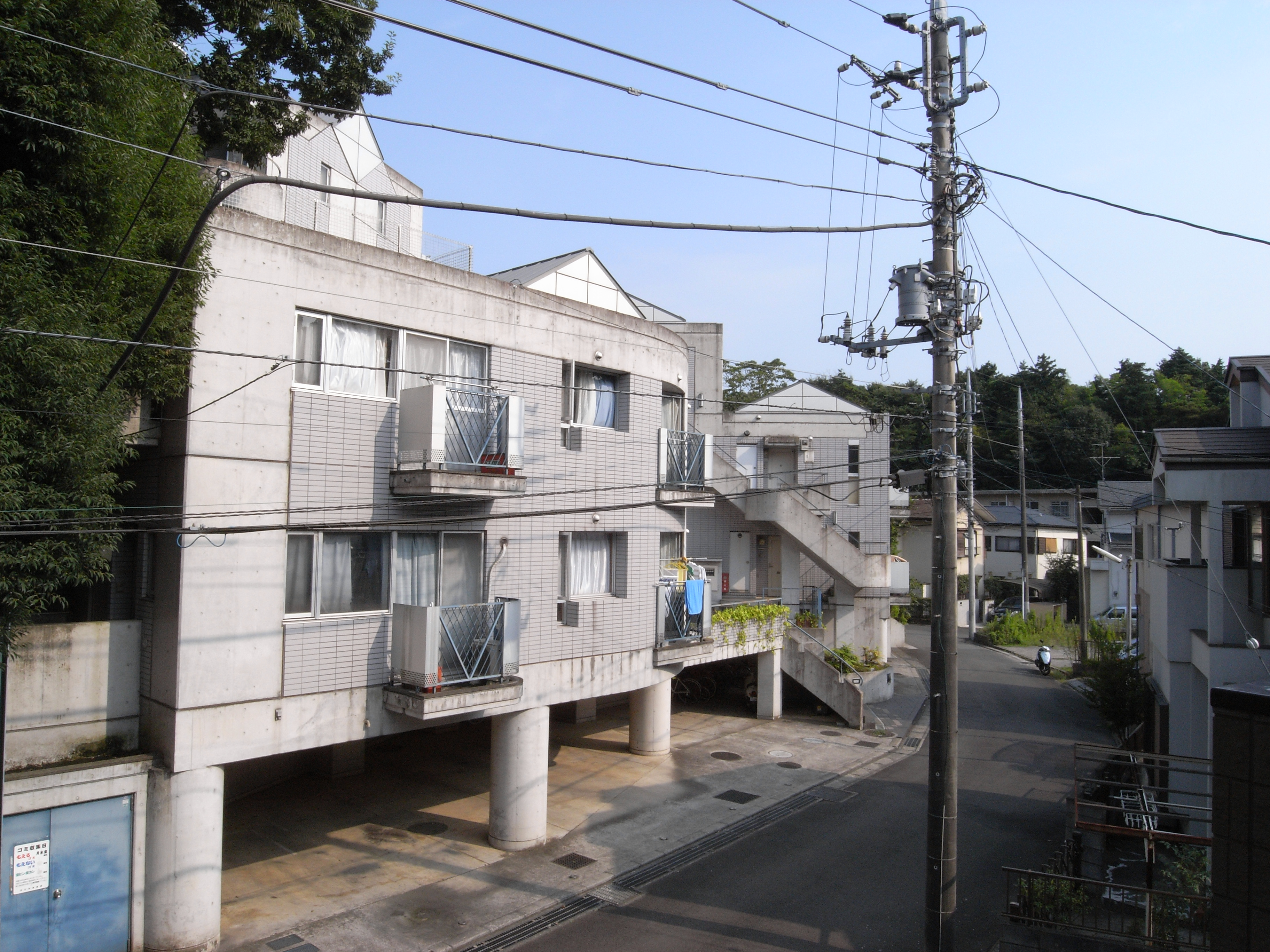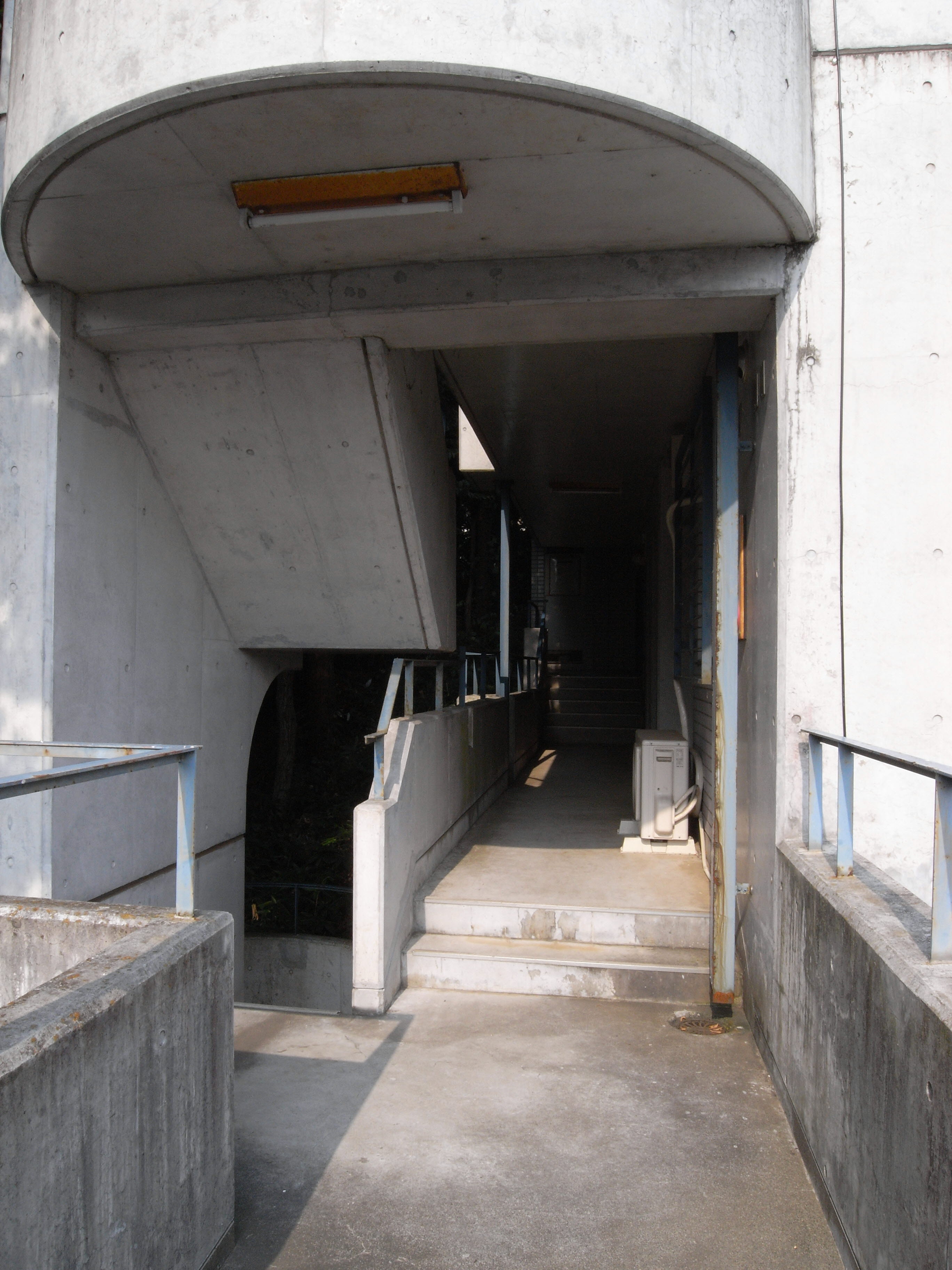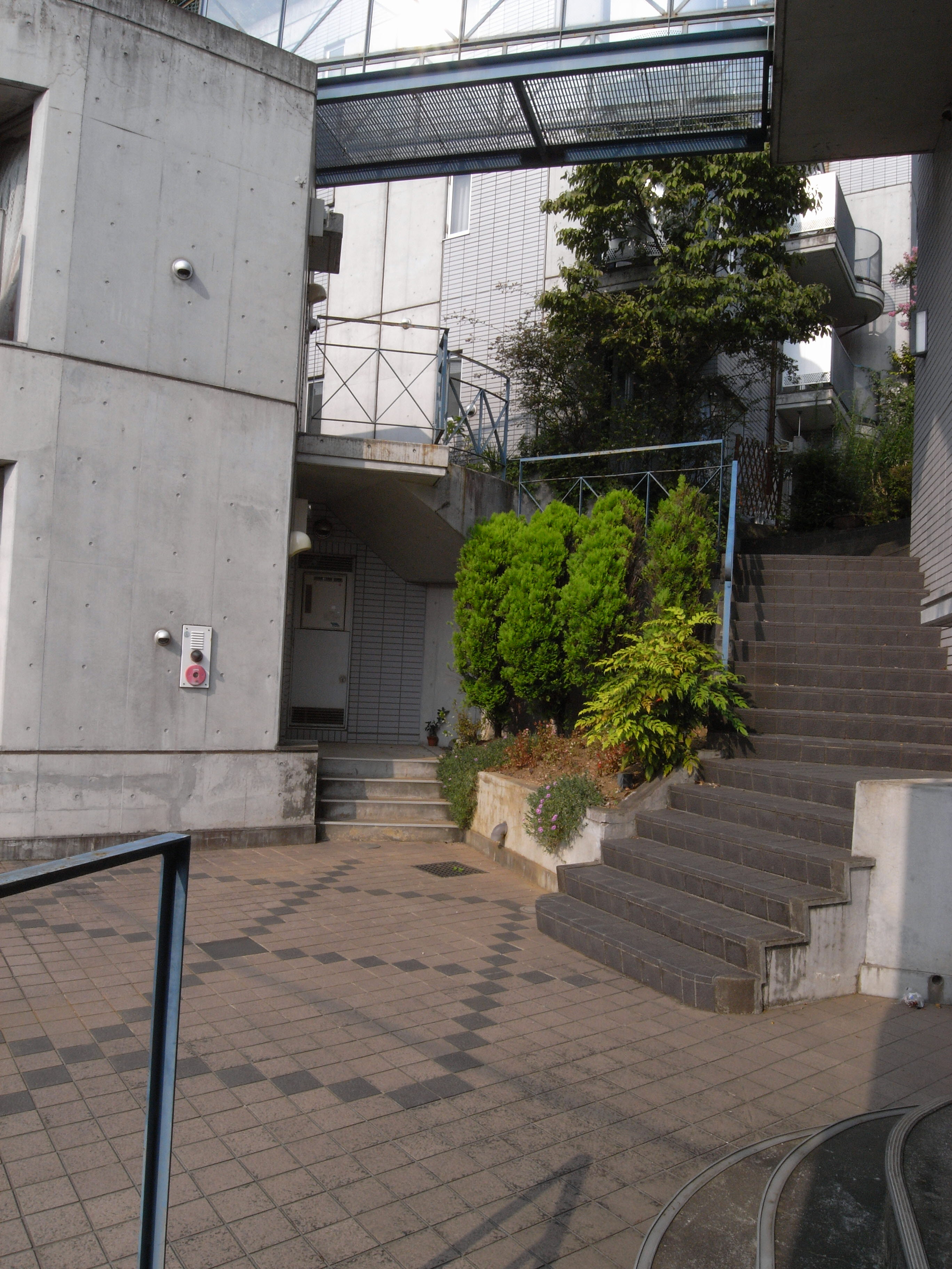 VILLA FLOREST도 가능한 토지의 지형을 변경하지 않고 싶어하는 설계자의 기분이 느껴지는 경사지라는 지형을 적극적으로 긍정적으로 활용하는 집합주택임이 느껴지는 전경이다.