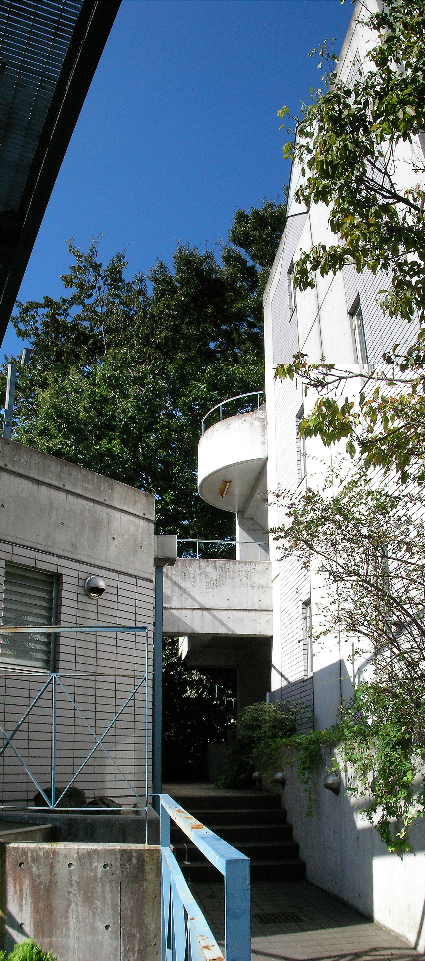 경사지에 계획된만큼, 계단이 특징인 회유할 수 있는 외부공간은, 분절된 세 주동의 구심점 역할을 하는 중앙 광장역할을 하는 중정, 중간 데크와 같은 장변형 외부공간, 전면도로측 주동의 옥상 테라스, 그것들을 잇는 푸른색의 브릿지, 계단 난간 등이 여유와 함께 공간의 긴장감을 유발시킨다.