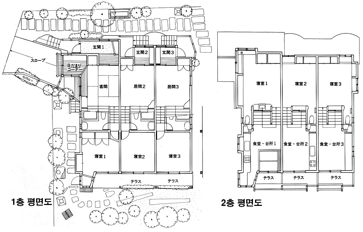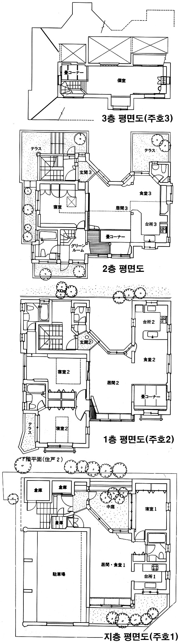 다행히 이 두 공동주택은 각각 3가구의 소규모였었기 때문에, 그 공동의 형식이 입체 나가야(일본식 연립주택)형식이든 ( 「히로O」), 적층된 공동주택 형식이든(「히로A」),