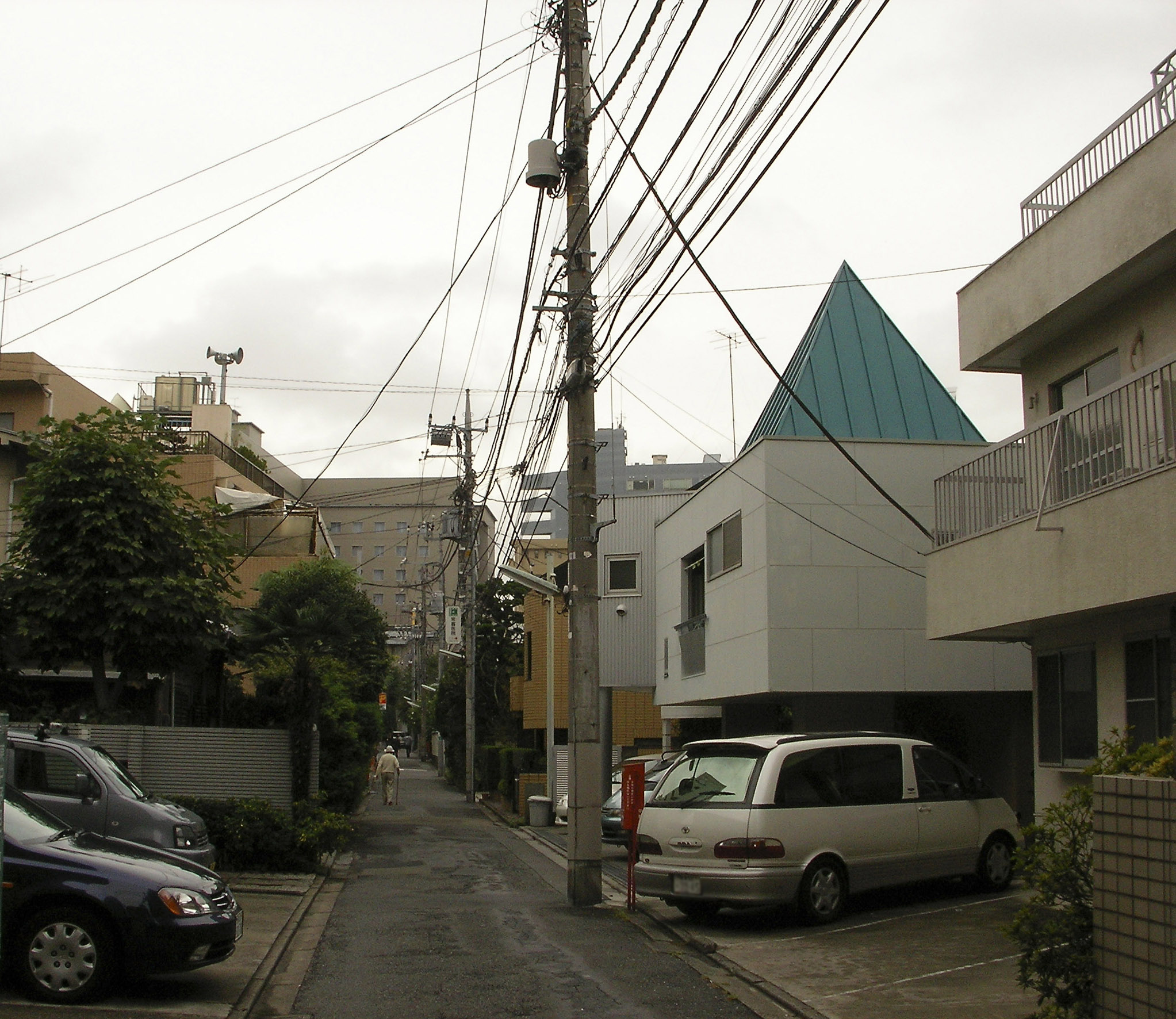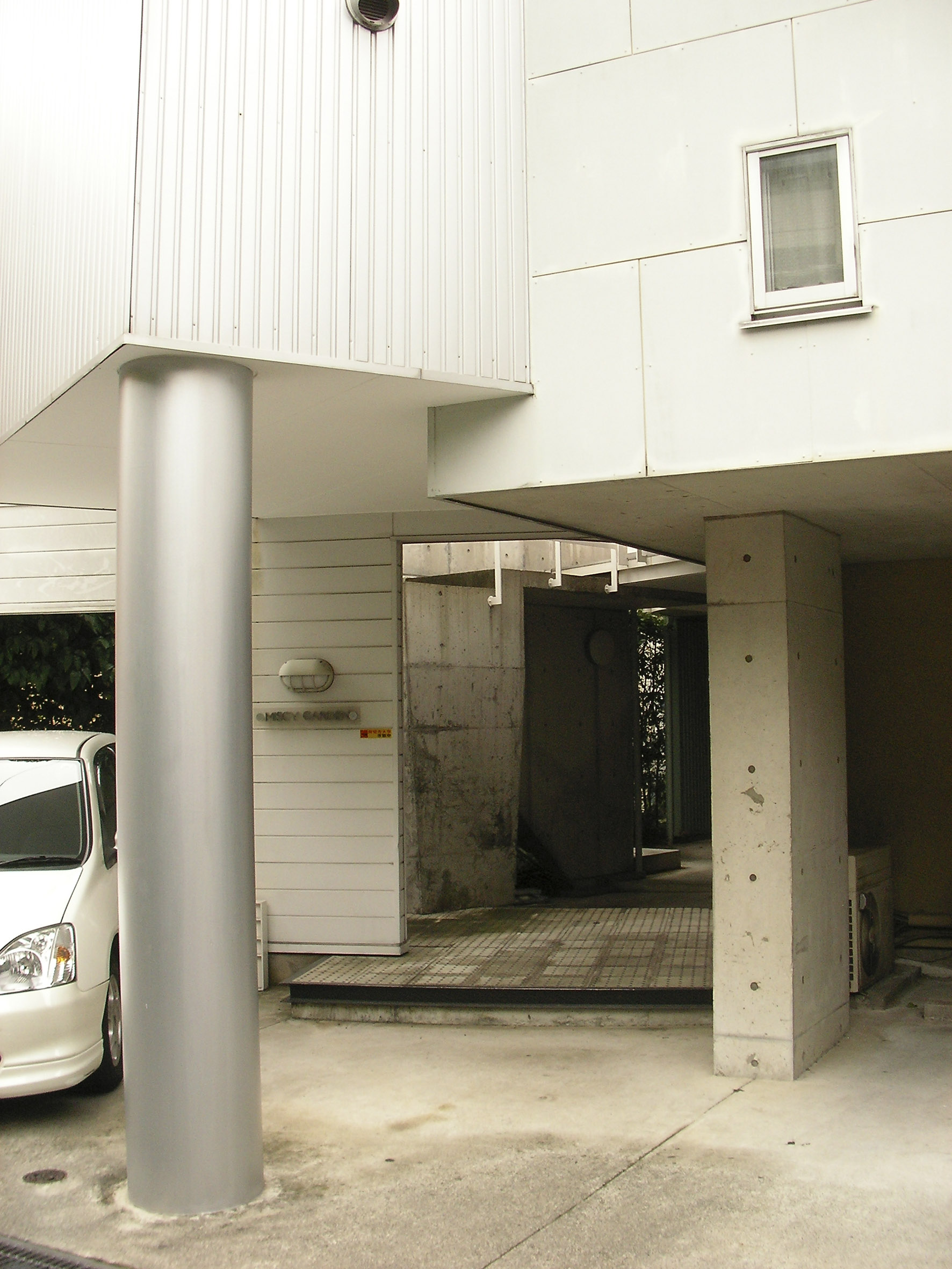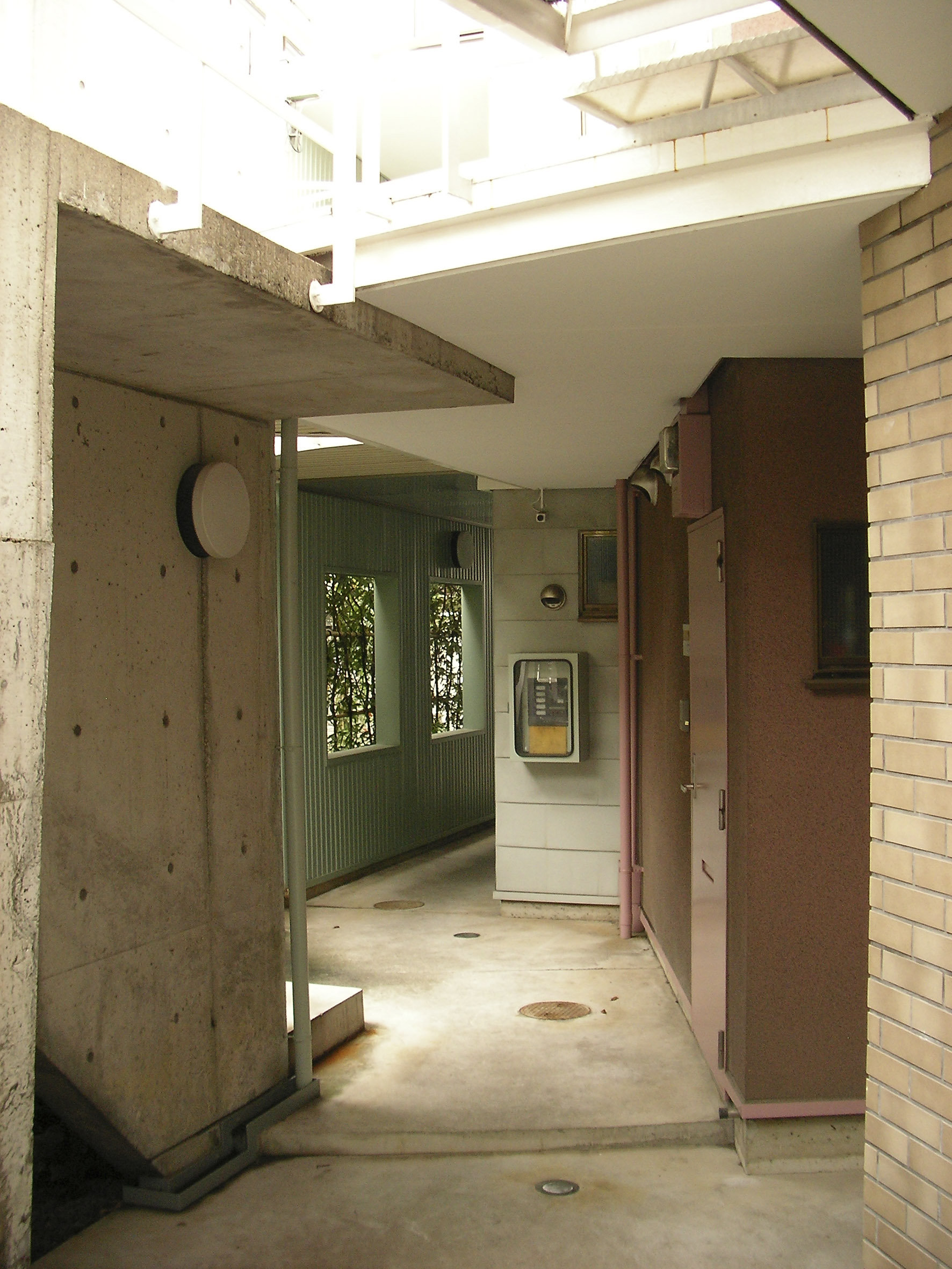 히가시나카노 아파트는 상업용 빌딩이 건물 늘어서 있는 큰길에서 주택가 골목으로 몇 발자국 들어간 곳에 서 있는데, 이 근처도 한때는 소규모 단독주택 위주의 주택가였음직한 곳이나, 지금은 2층 전후의 아파트와 중층 맨션들 틈에서 듬성듬성 단독주택을 볼 수 있는 정도의, 도시부 주택지에서 볼 수 있는 익숙한 풍경이다. 답사 당시에도 신축 공사를 위한 공사알림 표지만을 꼽아놓은 조그만 빈부지가 여기 저기 보였다.