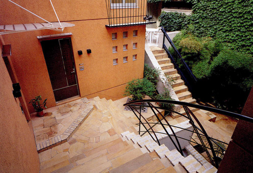 허용 바닥면적을 최대한 이용하기 위해서 기존 건물의 세 세대(世帶)를 포함한 여덟 세대는 중정의 계단을 통해서 직접 액세스하도록 되어있다.