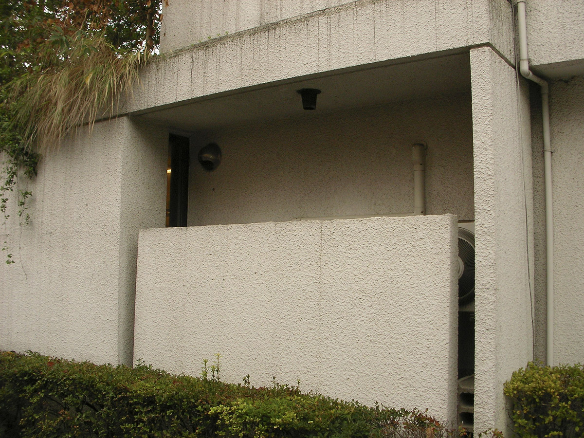주위의 주택가 환경을 고려하여 외부를 향한 외벽이 흰색으로 마감된 반면, 중정측의 외벽은 담쟁이 넝쿨과 푸른 하늘과 어울리도록 감색의 선명한 색채로 강조되어 있다.