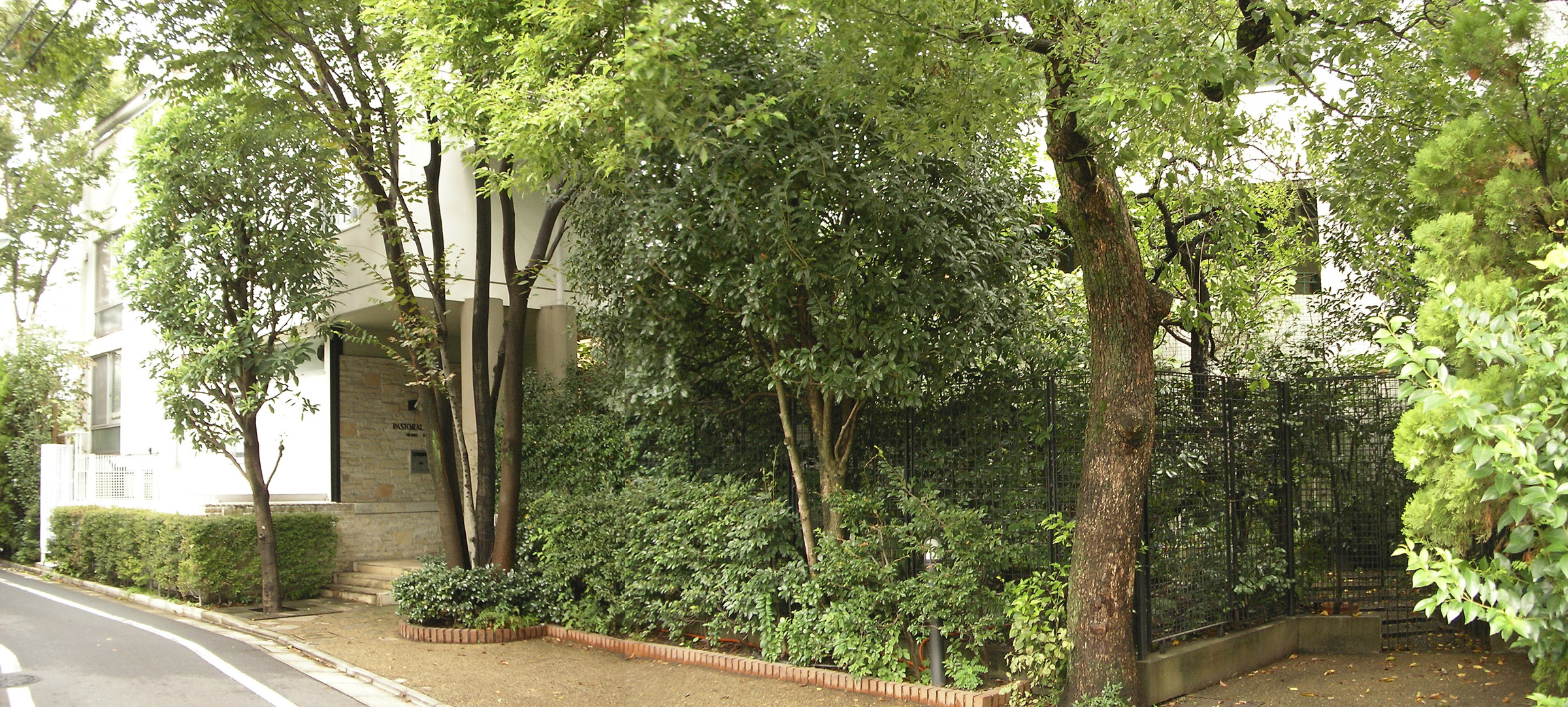 Pastoral Court는 메지로역(JR目白駅)에서 메지로 거리를 따라 도보 12분 정도 거리에 있는데, 번잡한 메지로 거리에서 한블럭 주택가로 들어가서 푸르른 가로수, 정원 조경들을 보며 느릿느릿 걸어서 가는게 더 좋은 주택가에 입지하고 있다. (근처에는 Tokugawa Village, 메지로 숲, 누구집인지 모를 정원 조경이 눈에 띄는 민가 등이 산재해 있다.)