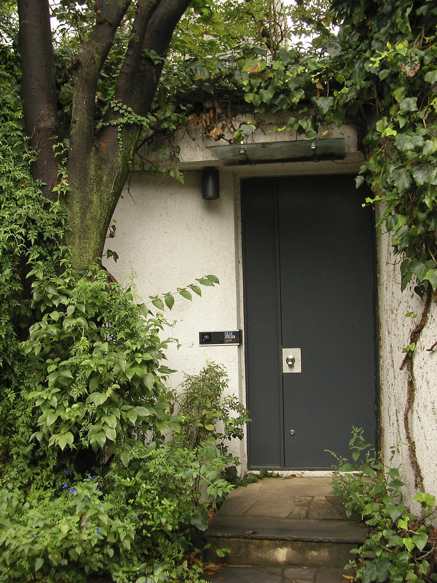 그렇게 잠시 걷다보면 4~5층 높이의 나무들이 우거진 주택가 도로 모퉁이에, 지어진 지 시간이 좀 흘러보이는 아담한 흰색 건물, 넝쿨로 몸을 감싼 건물, 그리고 지은 지 얼마 안되어 보이는 사암으로 마감된 벽과 투명 유리 스크린 현관, 그 안 쪽으로 보이는 감색벽으로 둘러싸인 중정이 인상적인 건물군을 맞딱드리게 된다.