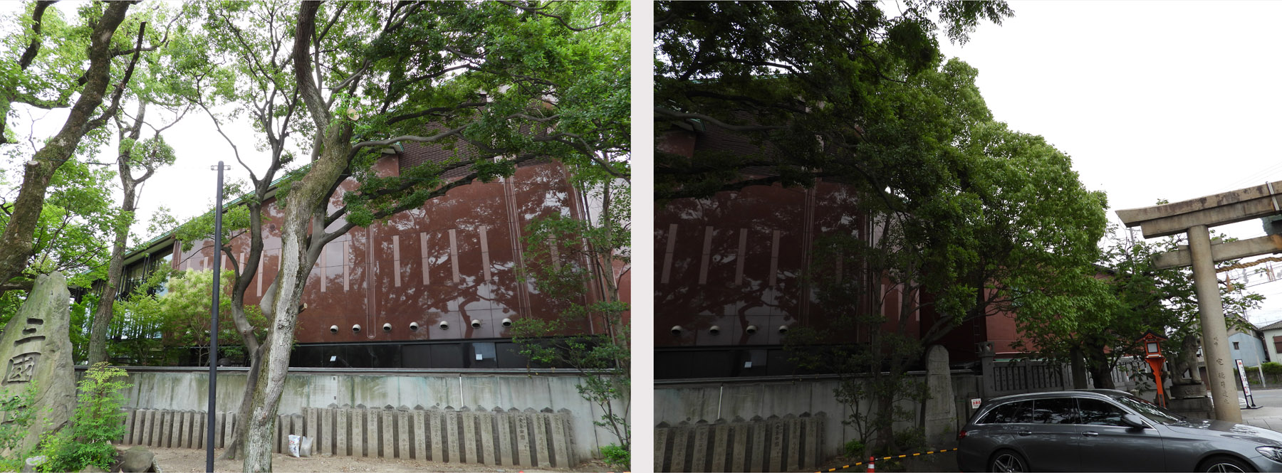 이 지역은 첫방문(5km정도 더 오사카 시내 방향의 북측으로 올라가면 안도 타다오(安藤忠雄)의 초기작 테즈카야마 플라자(帝塚山プラザ)가 있다.)이므로 일본인들에게 어떤 의미가 있는 곳인지는 알 수 없지만, 코우큐안 부지 바로 옆에 신사 등이 있어 가볍고 경박한 분위기가 아닌건 짐작이 간다.