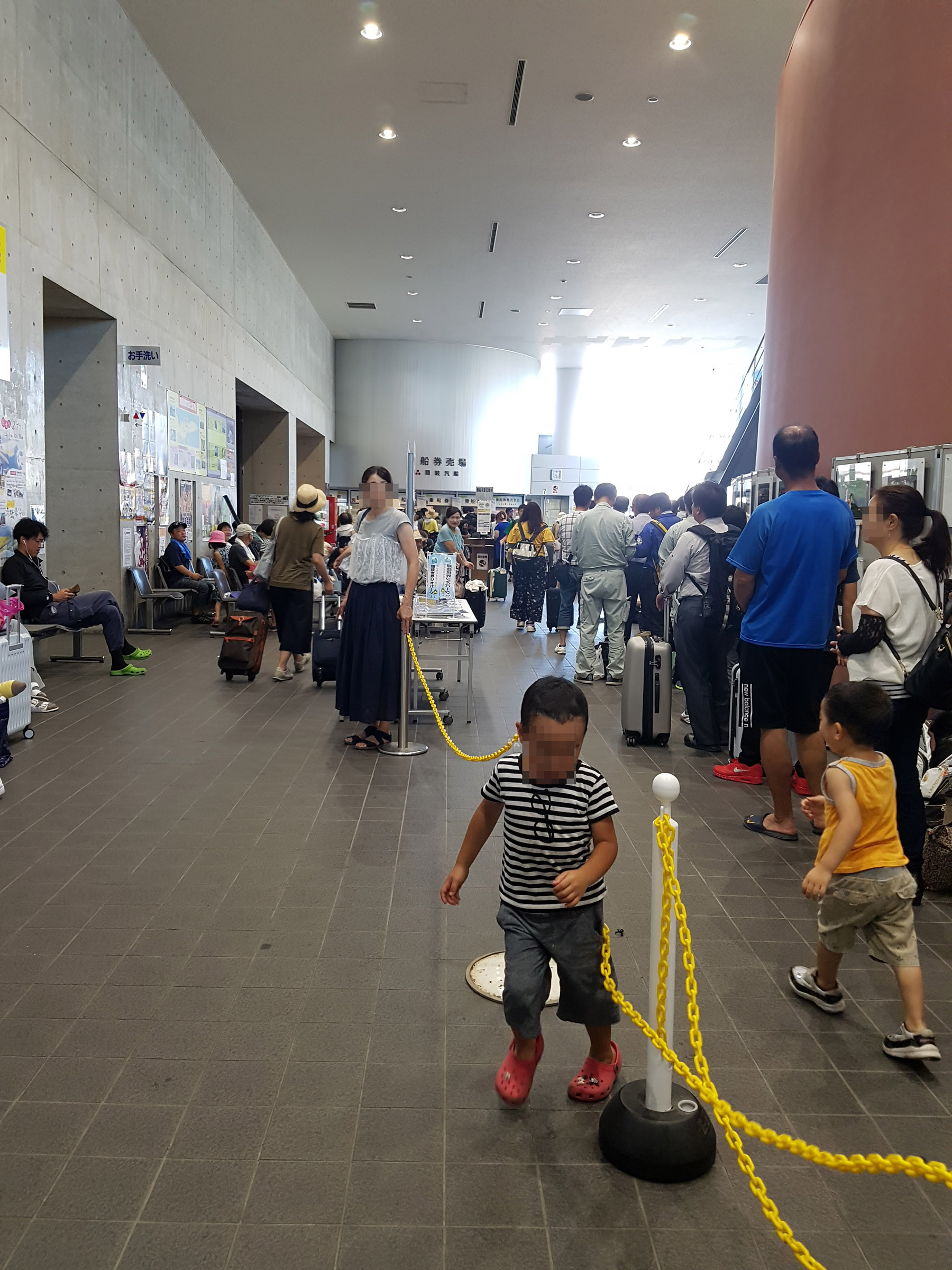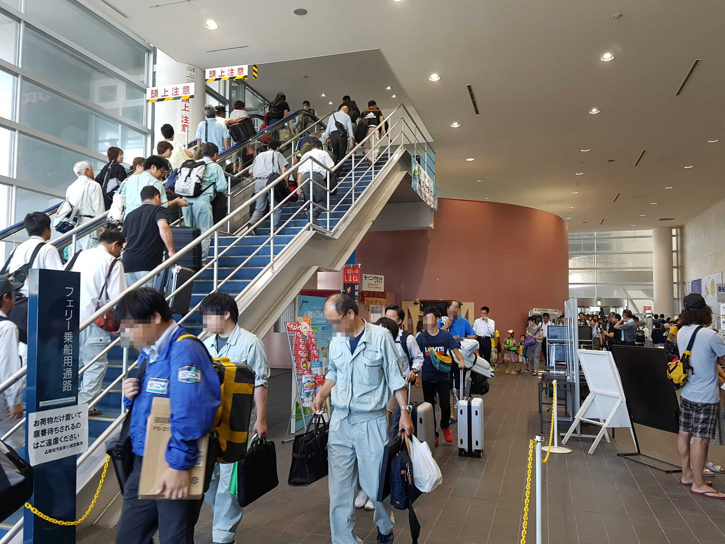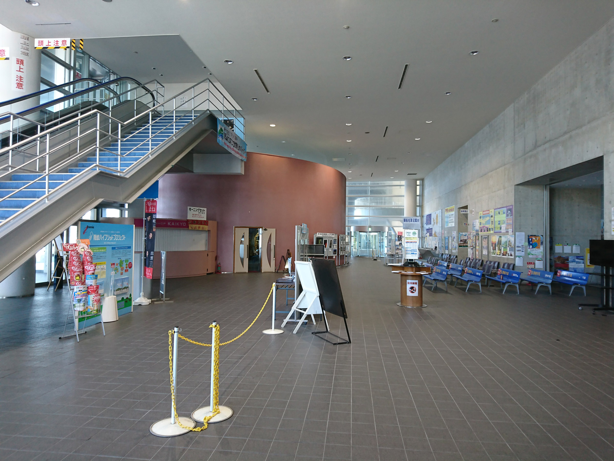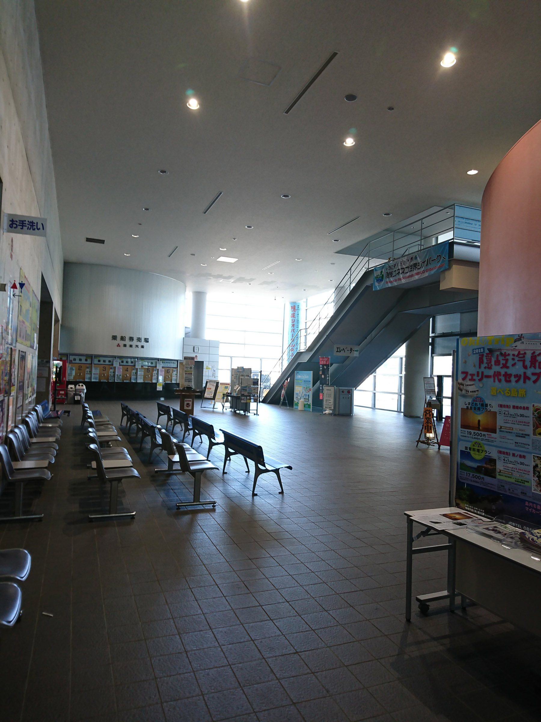 서측동 1층 터미널 로비에서 티켓구입, 대기를 하고, 페리는 2층으로 올라간 후 승선한다. 복잡하고 웅성 거리던 승선객들이 빠져나가면 갑자기 폐관이라도 한듯이 터미널이 적막해진다.