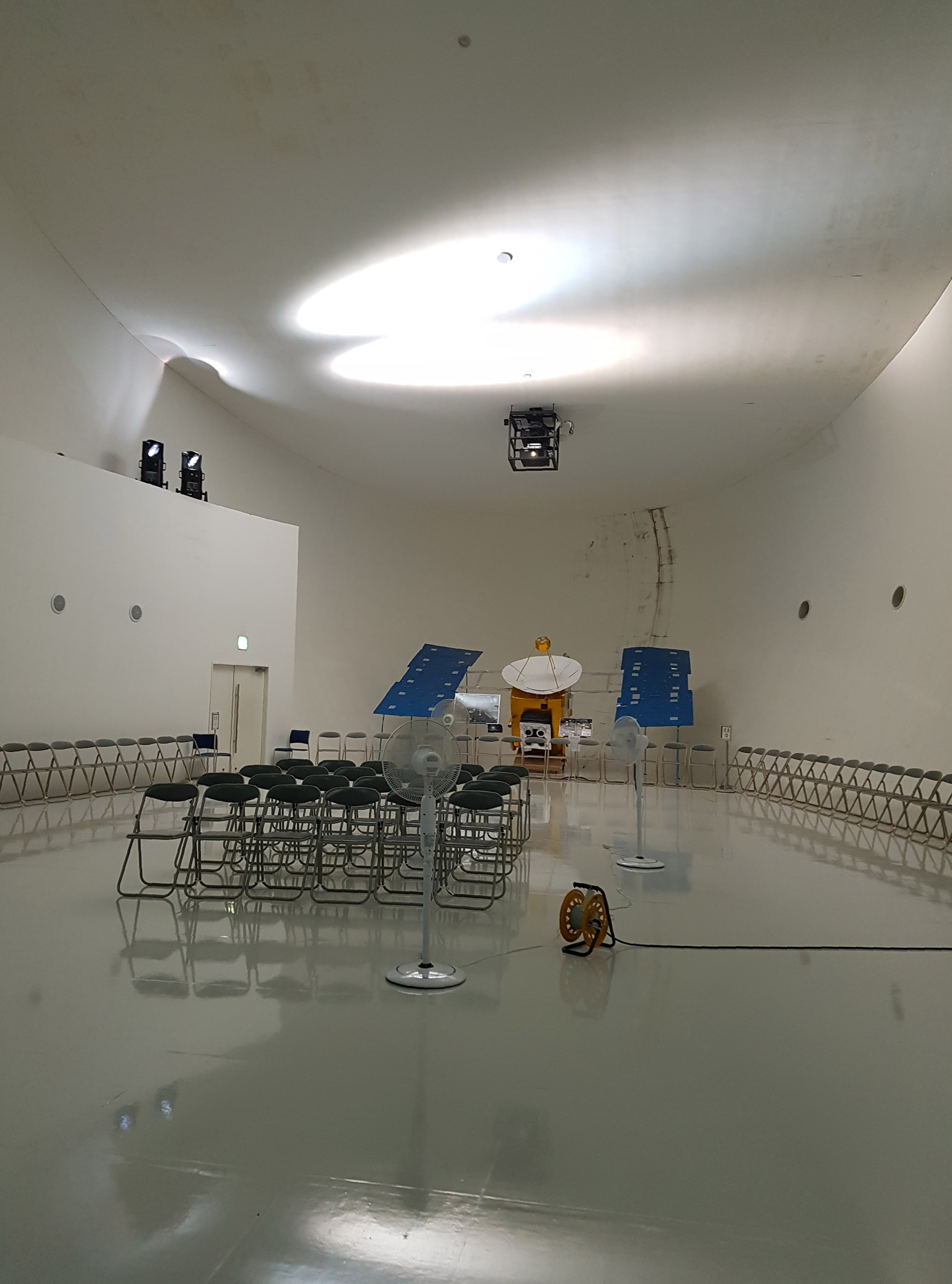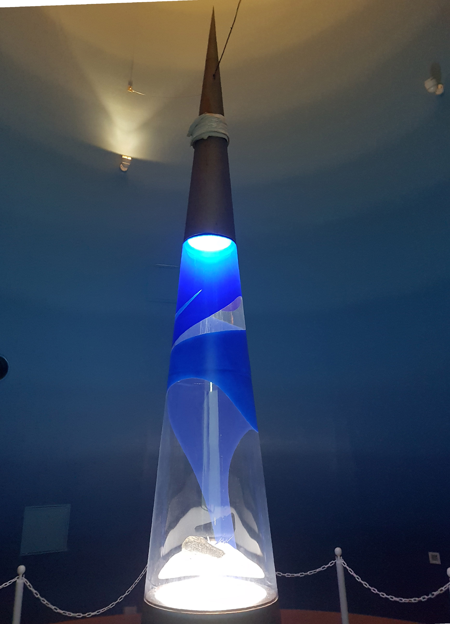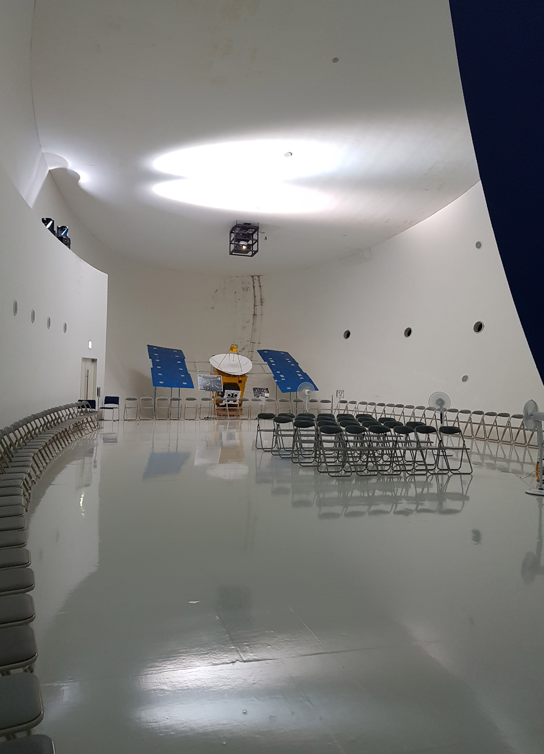 4층의 운석 박물관 메테오 뮤지엄 영상 전시실. 바깥에서 바라보던 운석 모양의 타원체 외형을 그대로 내부공간에서 감지할 수있다.