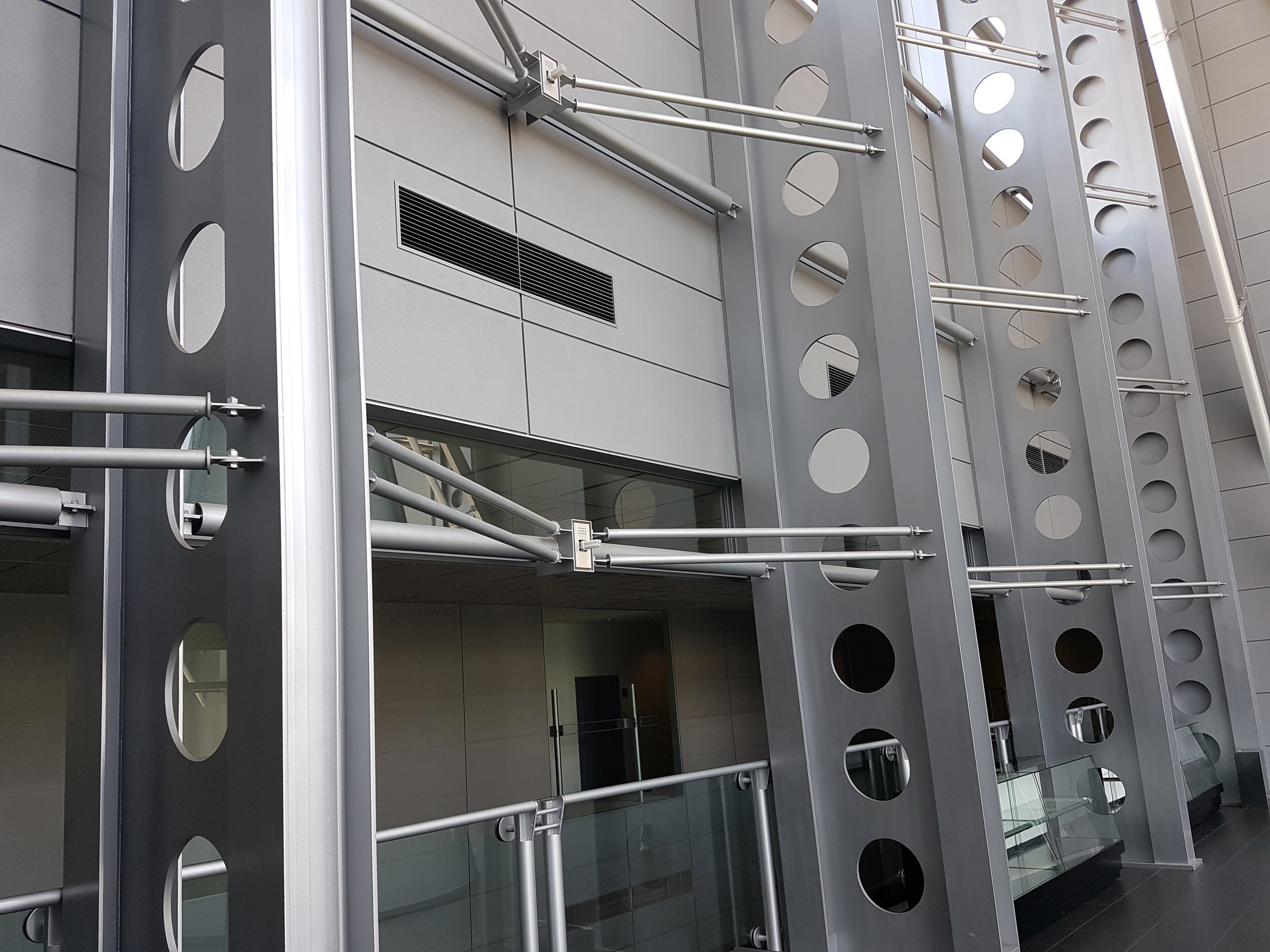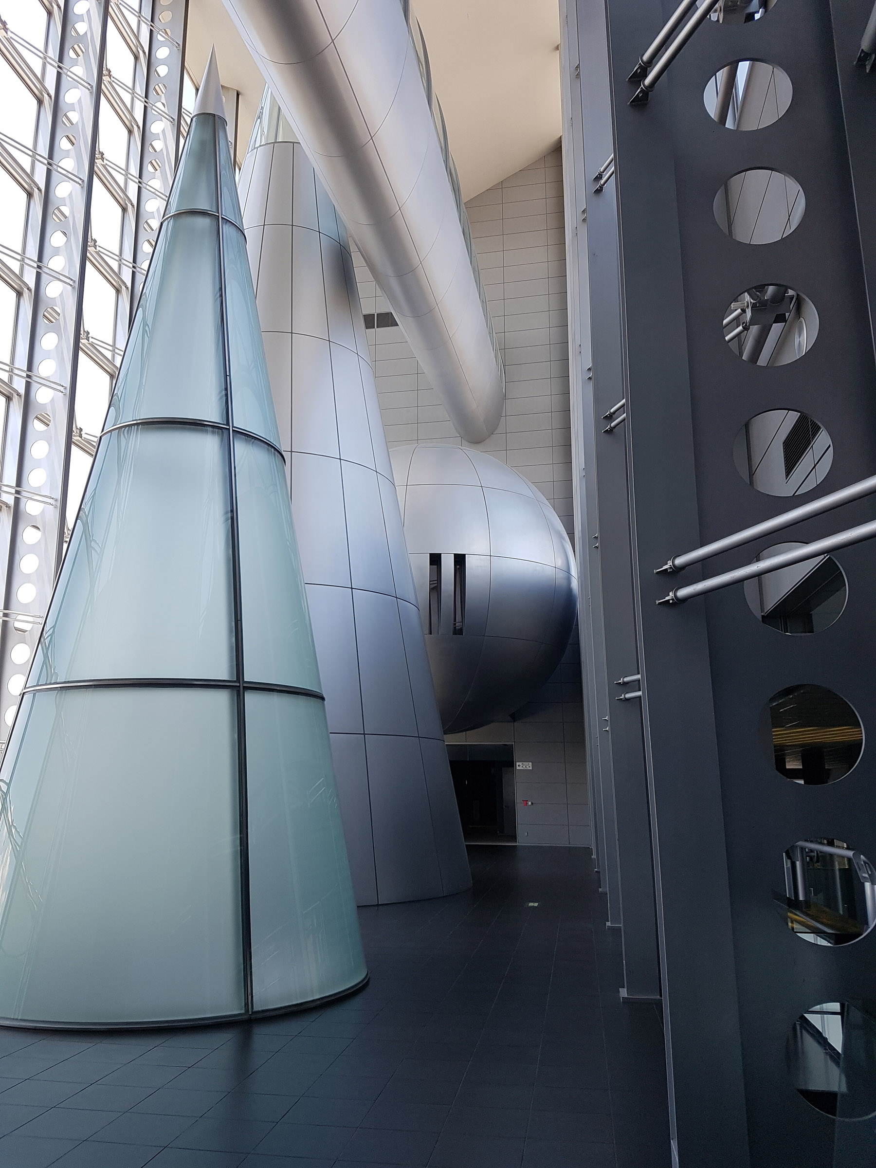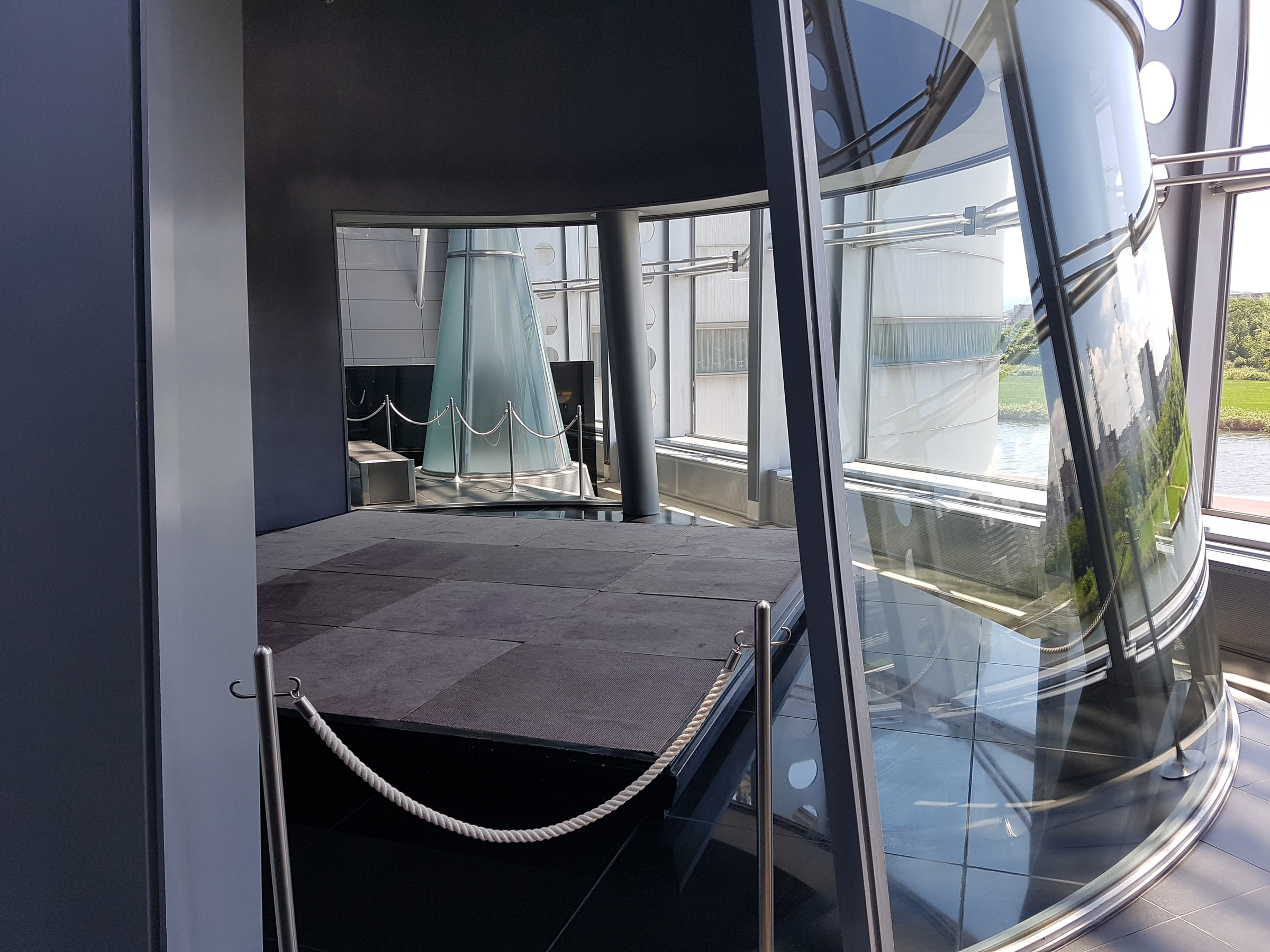시설의 중앙을 관통하는 갤러리, 아트리움 등은 그런 의도하에 계획되었으며, 특히, 중앙의 4개층 높이의 보이드 공간의 투명한 커튼월 공간은 교류 살롱으로, 오오하시가와 남측에서 바라보는 시마네 반도의 능선을 배경으로 하는 쿠니비키 메쎄 파사드의 포인트라고 할 수 있지만, 이 곳의 주요기능은 통로, 라운지 등으로 주요 기능은 없으면서 메쎄의 아이덴티티 역할을 하고 있다.