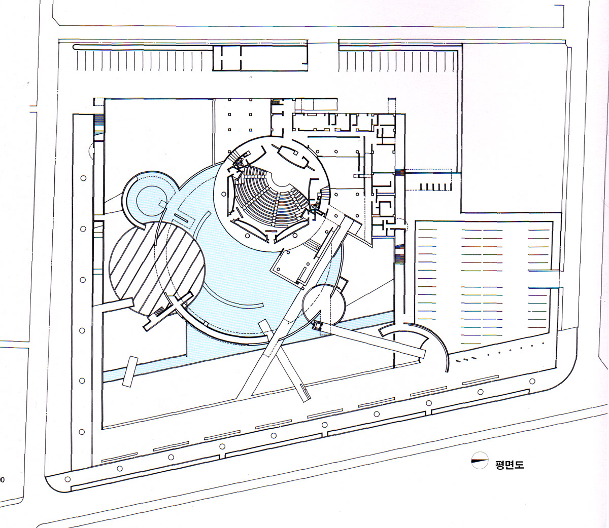 심포니 가든홀도, 내부공간을 보고 싶어 두 번이나 답사를 했는데, 갈 때마다 휴관이었기 때문에 그랬을지도 모르지만 인적없는 관리되지 않은 노출콘크리트 마감의 외관은, 작품집에서 보는 감상과는 달리, 요즘 유행하는 폐허 건축 미학을 느끼게까지 하였다.