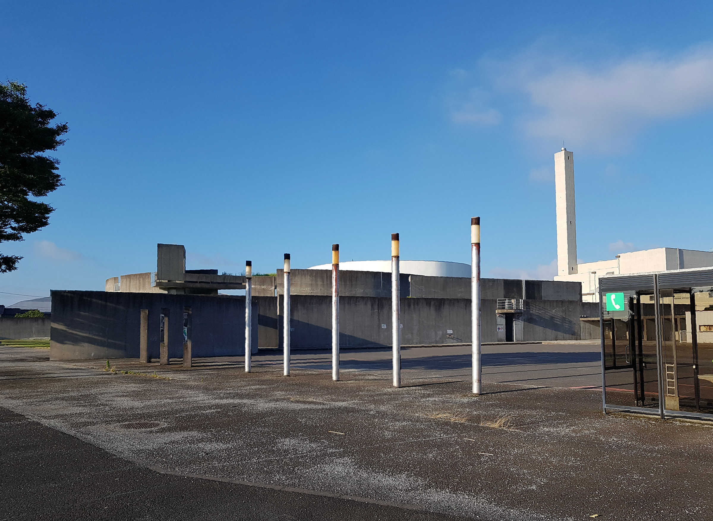 7개의 탑에서 쏘아 올려지는 빛은 없어지고..미나토 사카이 교류관(みなとさかい交流館)/ 타카마츠 신(高松伸, Shin Takamatsu)/ Minatosakai Community Center/ 1997