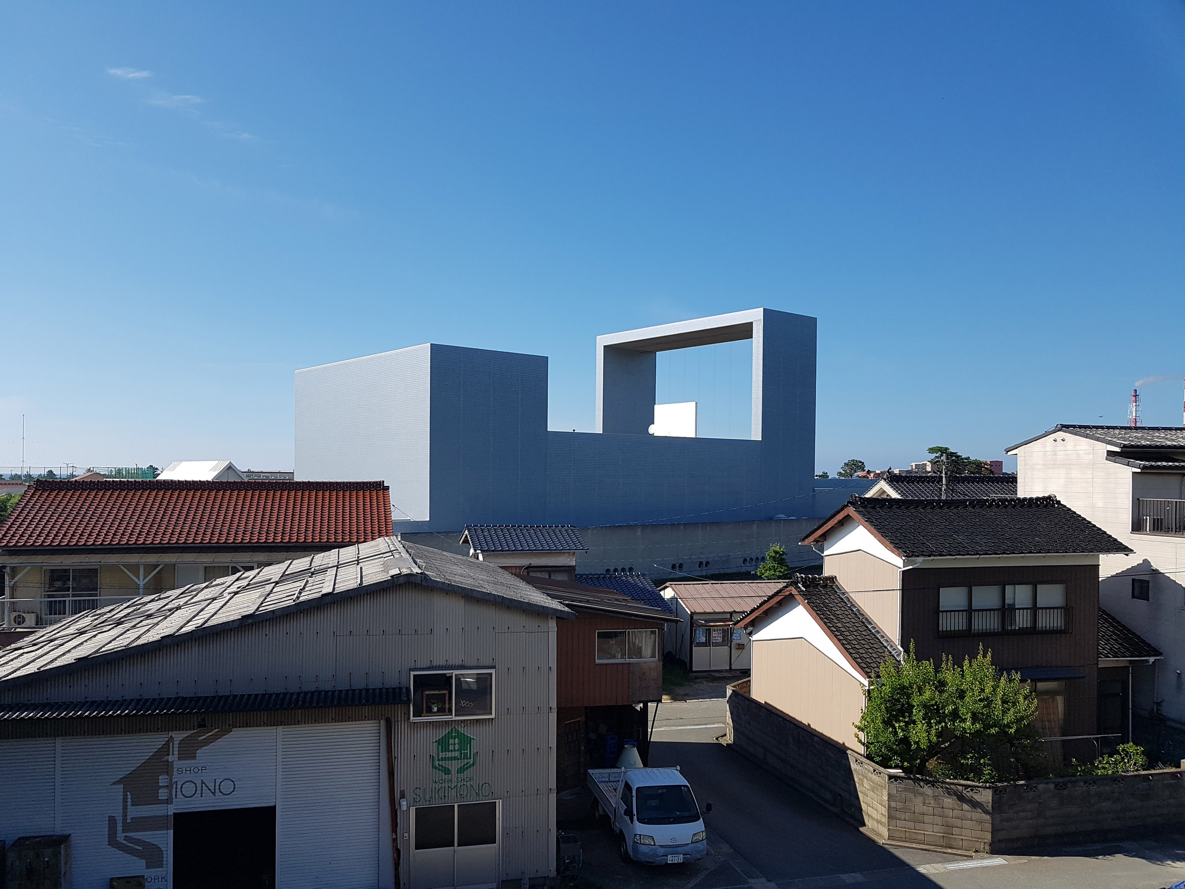부지는 방적공장 철거지로 주위는 해안을 따라 동서로 길게 시가지가 발달한 흔한 지방도시의 풍경.