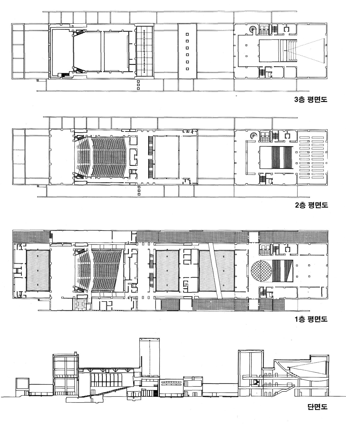 지금까지 건설되어 왔던 많은 다목적 홀이, 다양한 목적을 빠짐없이 하나하나 충족시키려는 홀을 모색한 나머지, 결국 어느 목적으로도 만족스럽게 사용할 수 없는 어중간한 건축용도(홀 Hall)로 되어 버리는 결과를 적지않게 목격해 왔고, 이러한 비관적인 결과는 어떻게 해서든지 피하고 싶었기 때문이다.