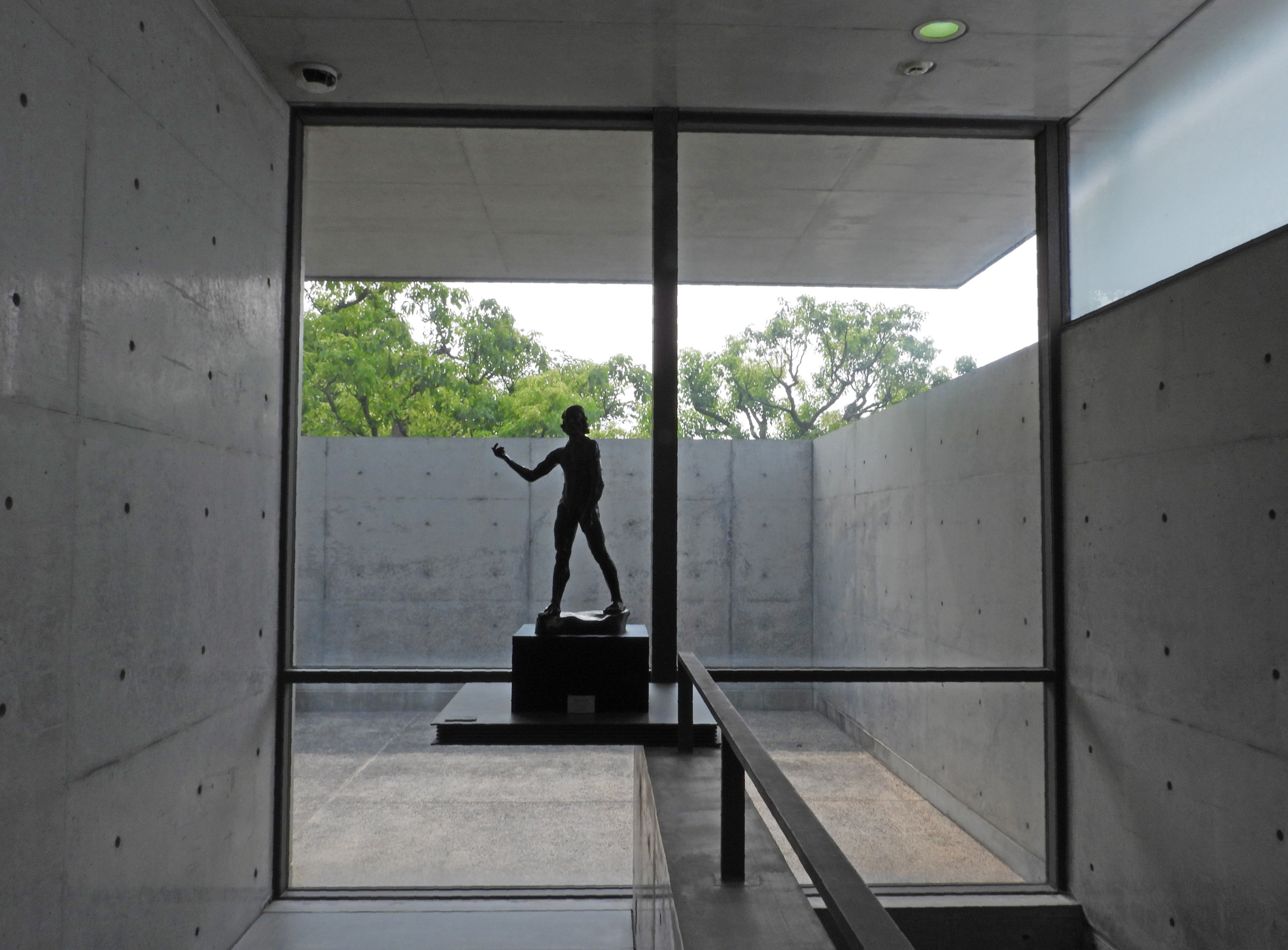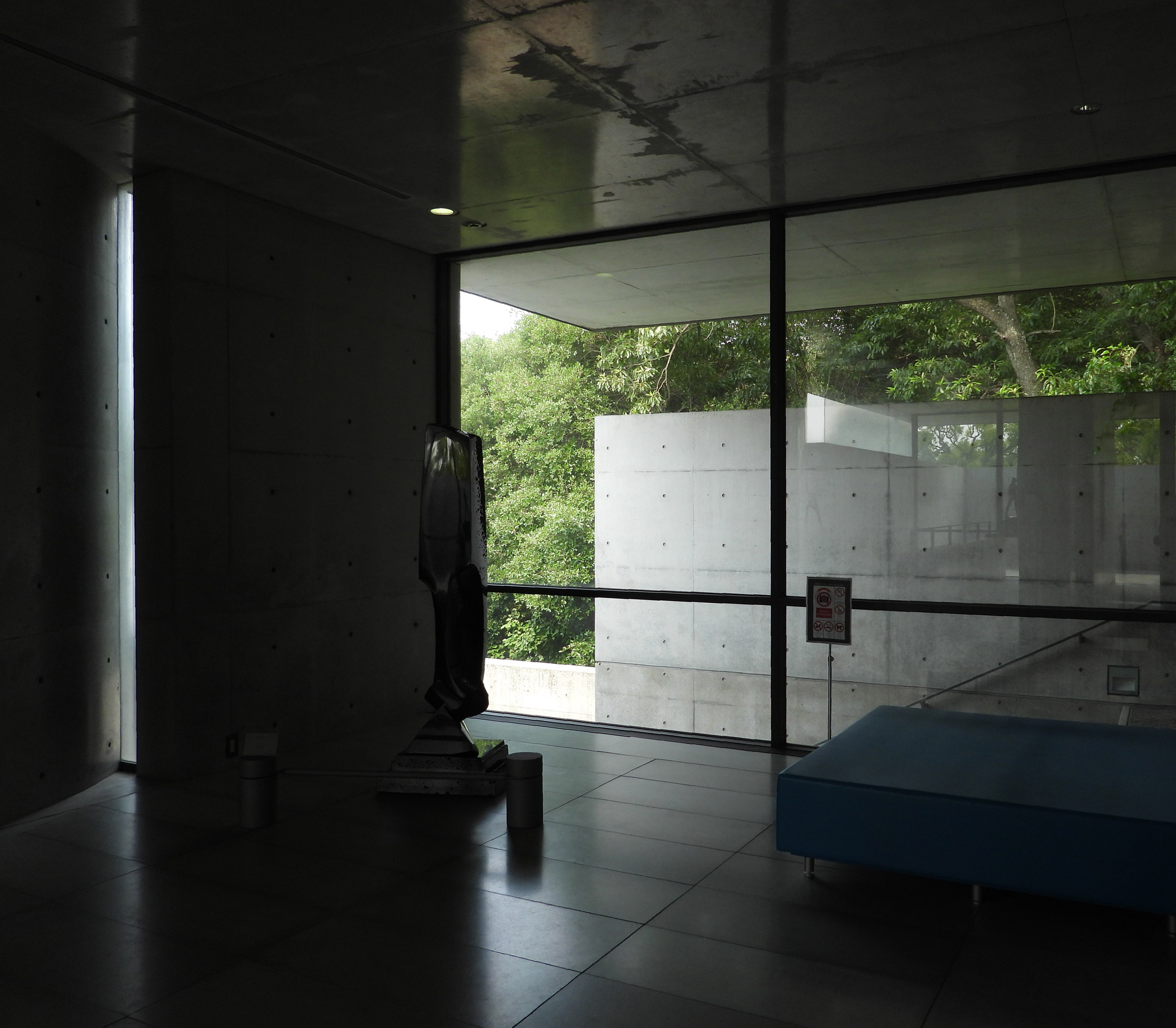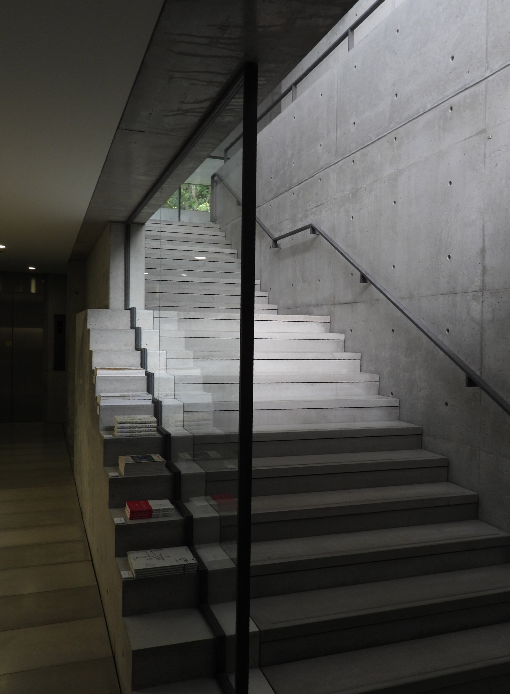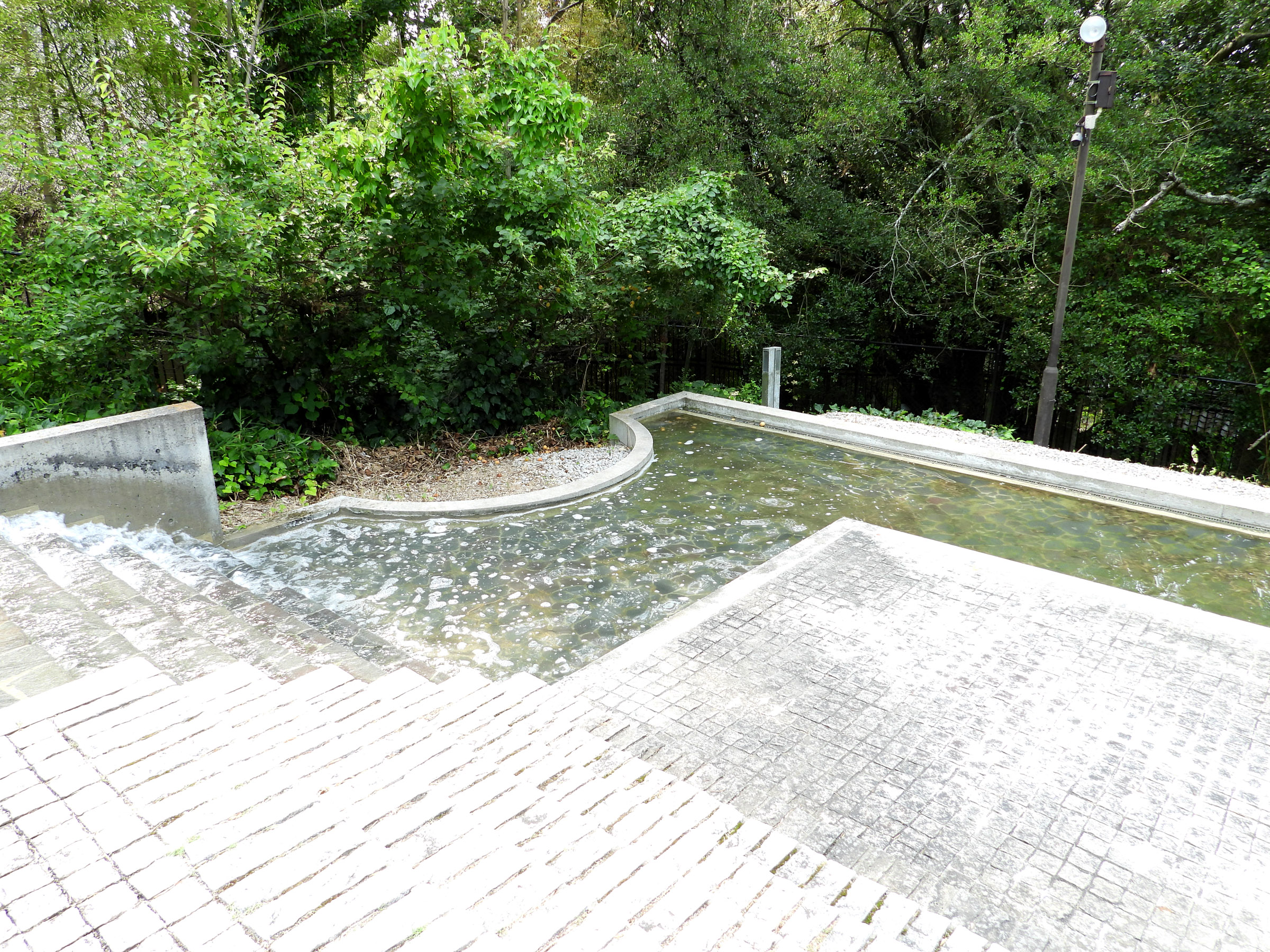 관람을 마치고 마지막에 갤러리의 문을 열고 밖으로 나오면 갑자기 조용하던 주위가 계곡을 흐르는듯한 물소리로 가득차는데, 고개를 돌리는 순간 눈 앞에 펼쳐지는 계단식 인공 폭포 정원(수경정원水景庭園)은 시코쿠 갤러리의 가장 큰 특징이라고 할 수 있다.