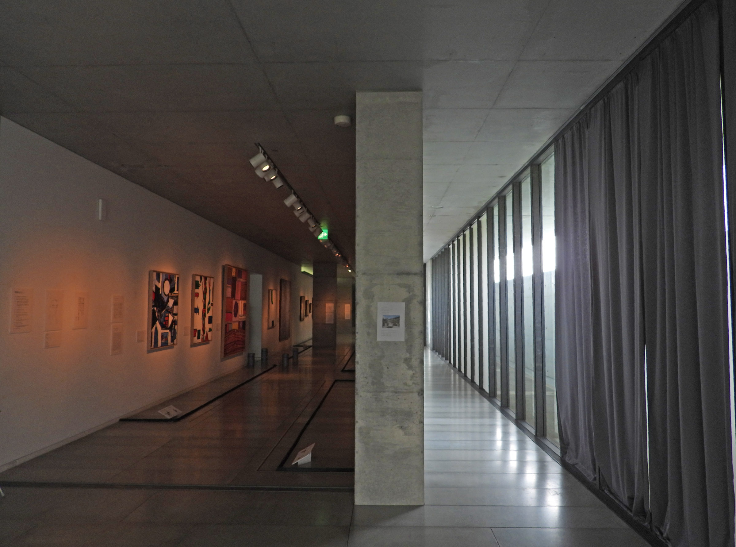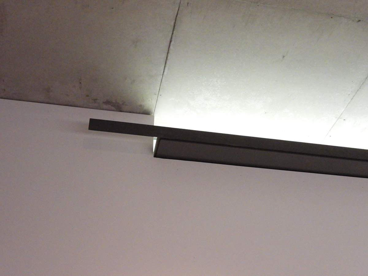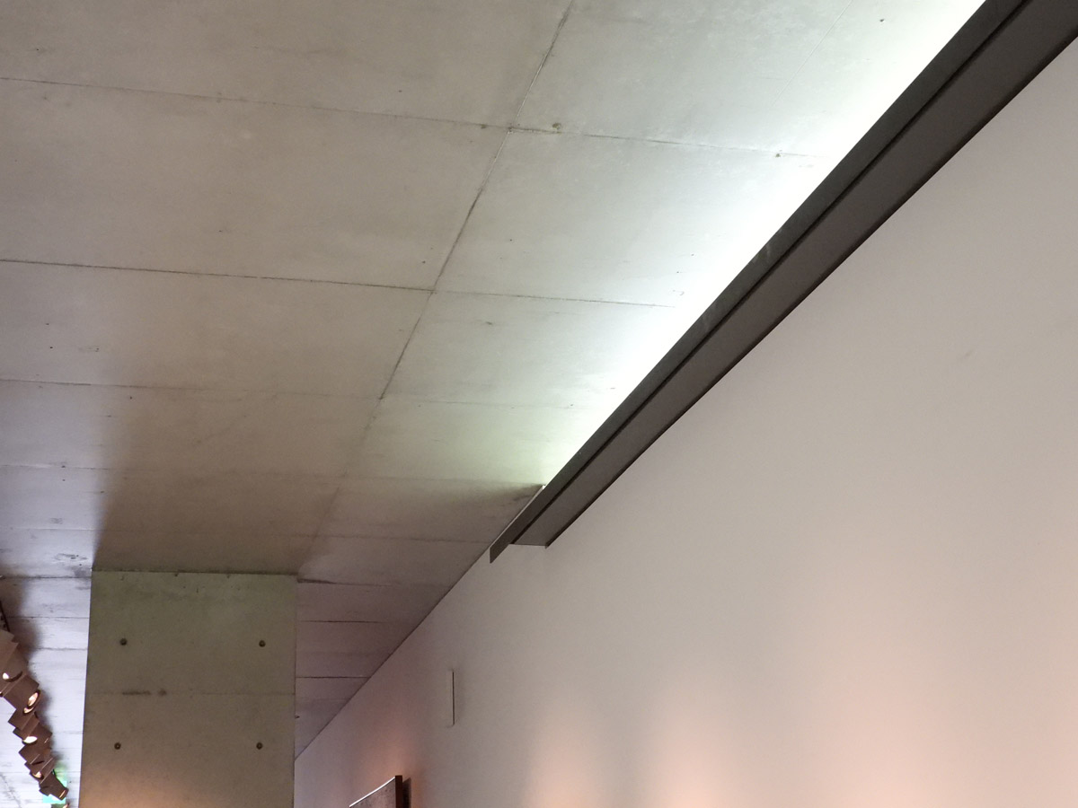 넓지 않은 소규모의 실내공간은 두개의 병렬된 박스의 지그재그식 동선유도로 필요한 관람공간을 만들어내고 있다.