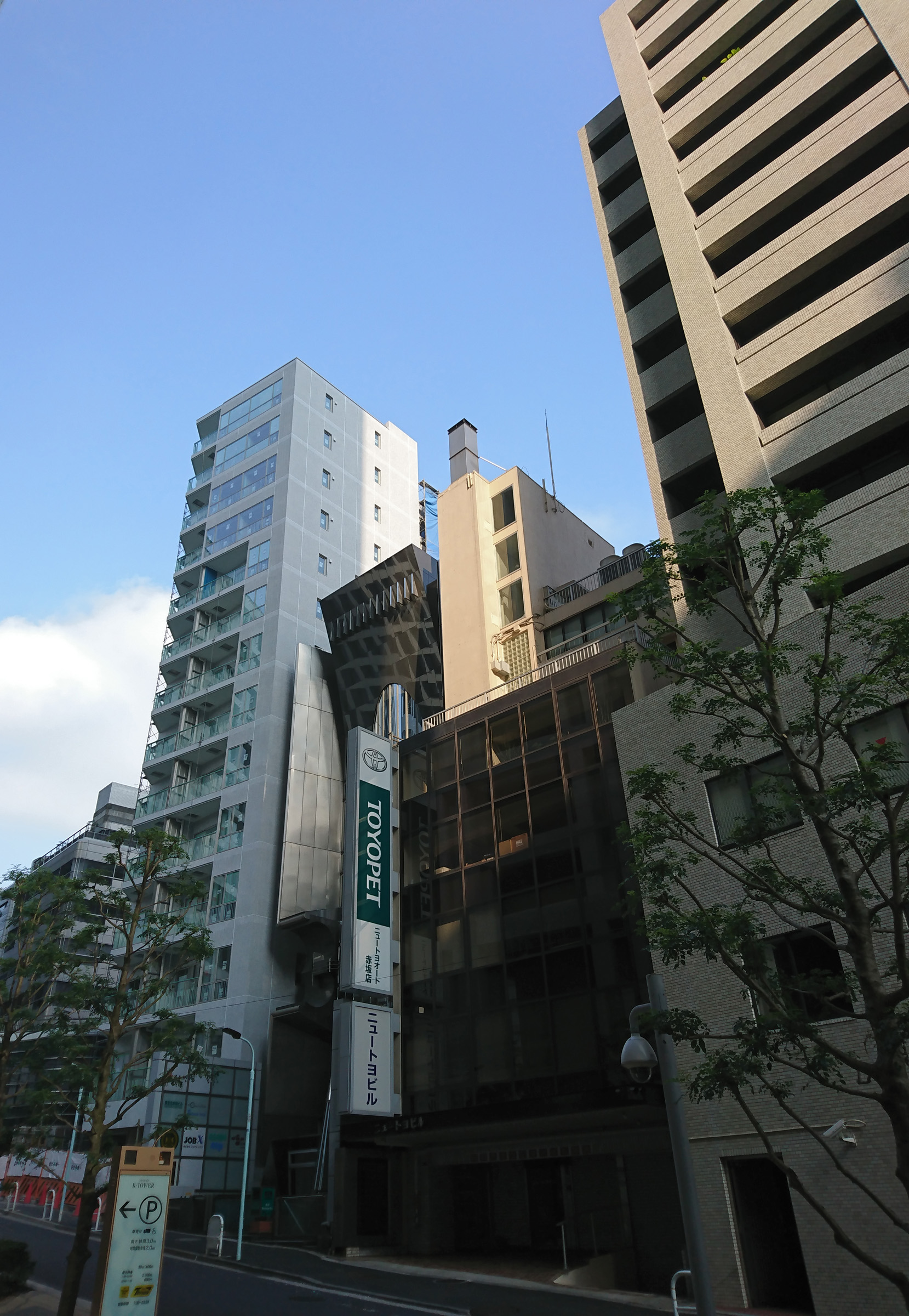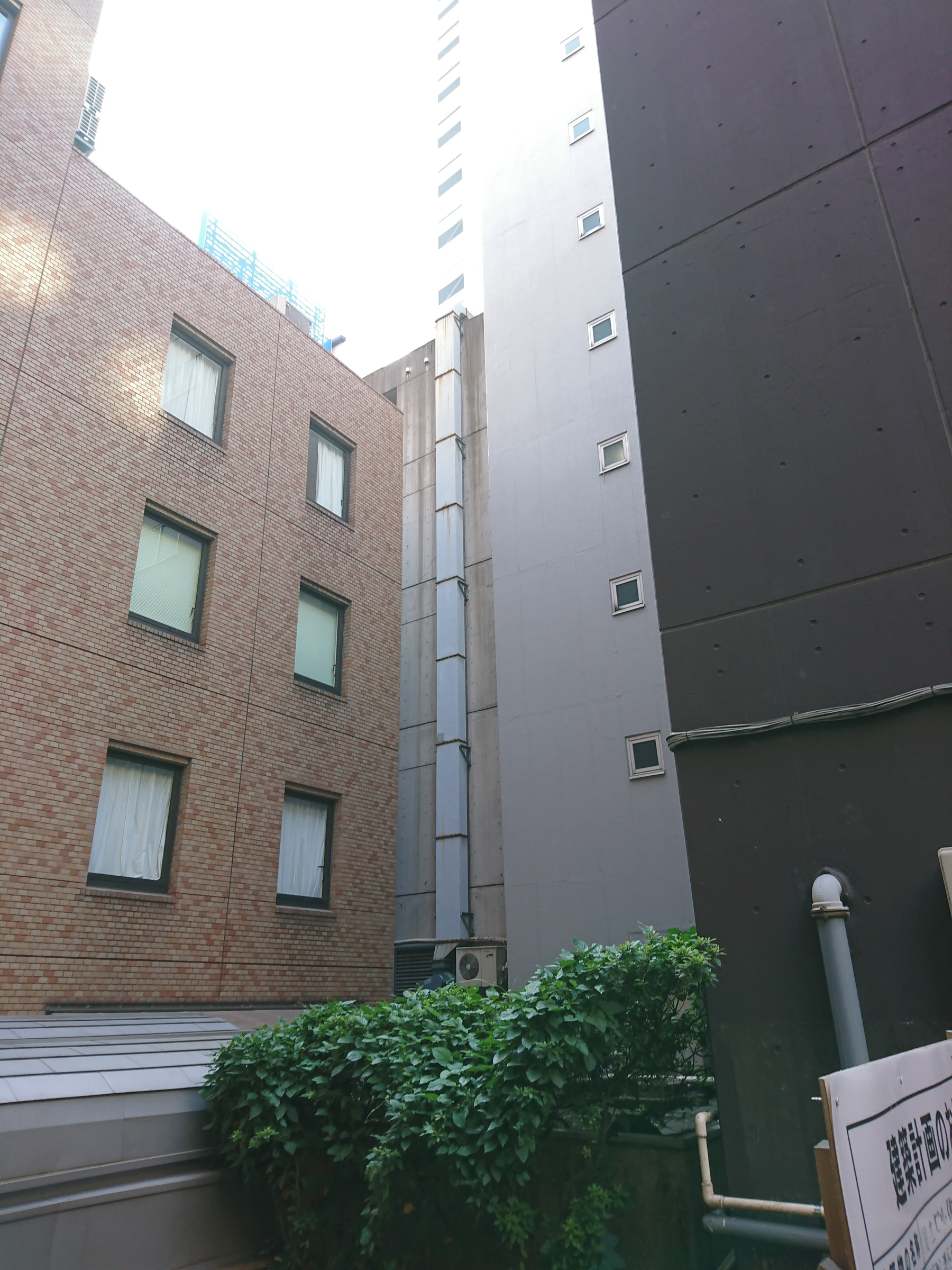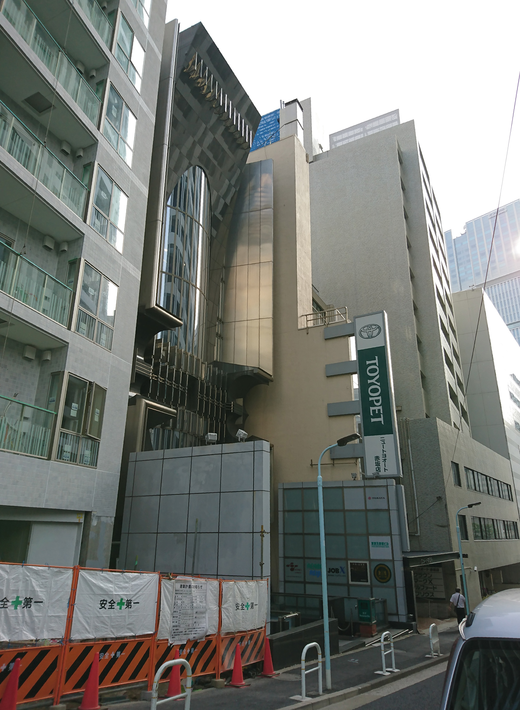 섬과 같은 삼각형 형태의 동측 한켠에 위치한 이마니시 모토아카사카 빌딩.