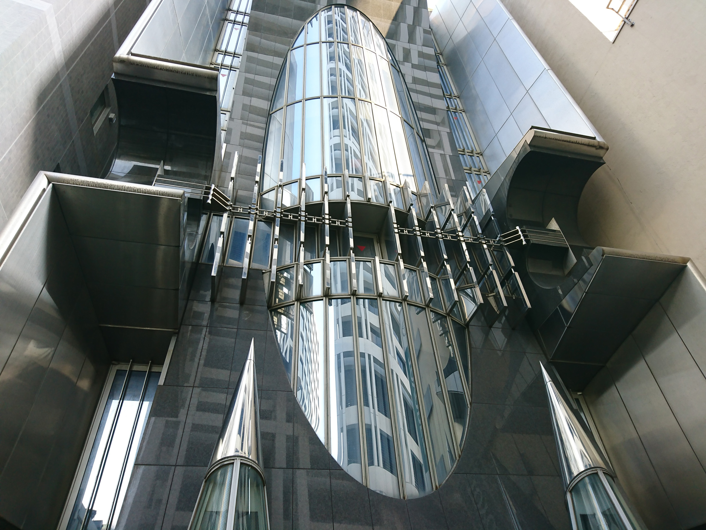 유리, 금속, 석재 + 세공 디자인을 연상케하는, 계획된 지 30년 가까이 지난 지금(답사는 2018년)도 전혀 그 세련됨을 잃지않는 근미래 디자인. 메카닉 디자인. 아무나 흉내 낼 수 없는 타카마츠 신만의 장인적인 디테일.
