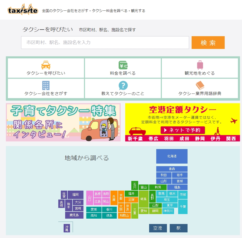 タクシーサイト タクシーを呼ぶ・予約する・料金を調べる・観光地をめぐる