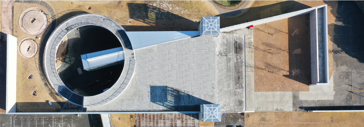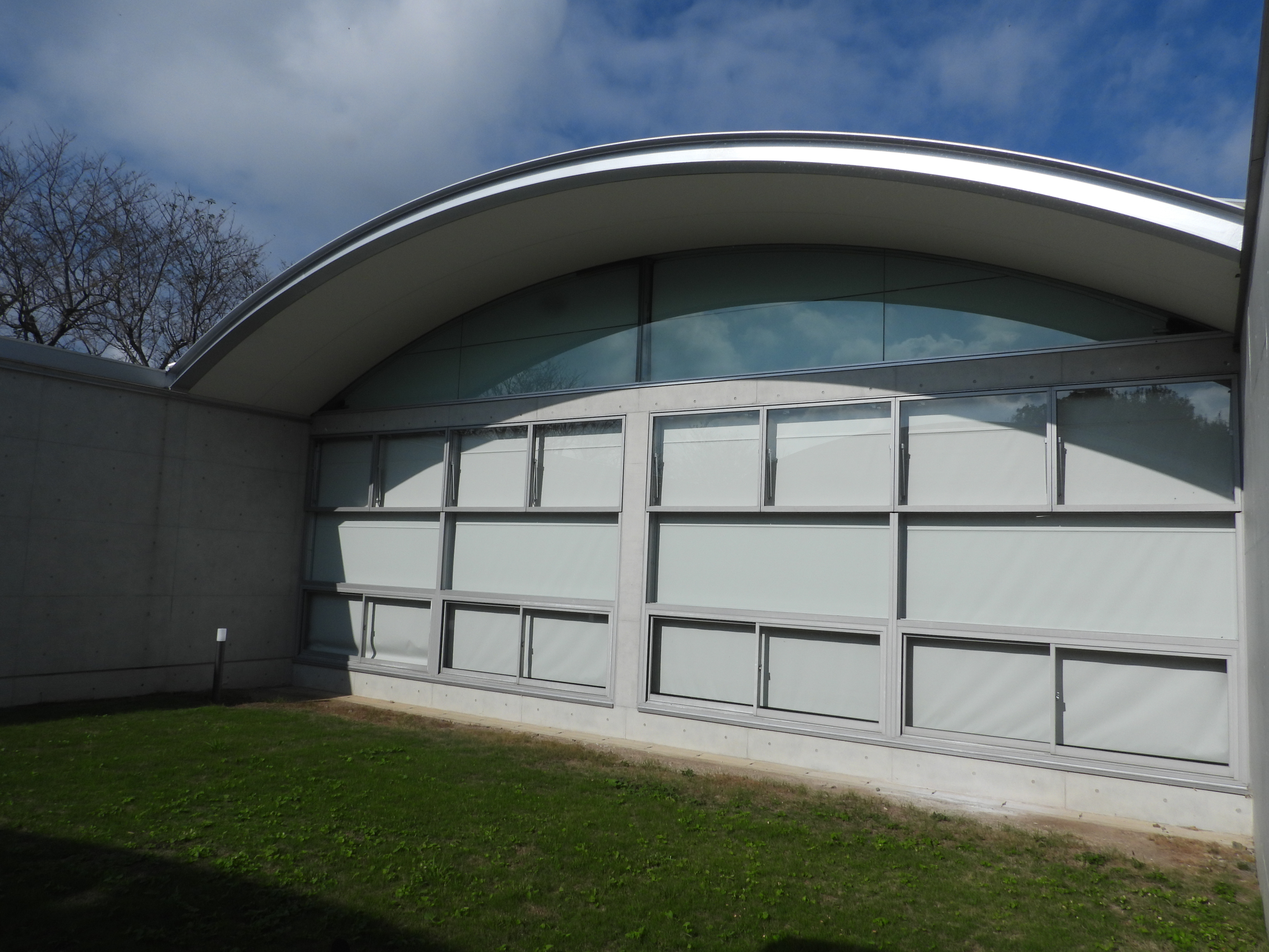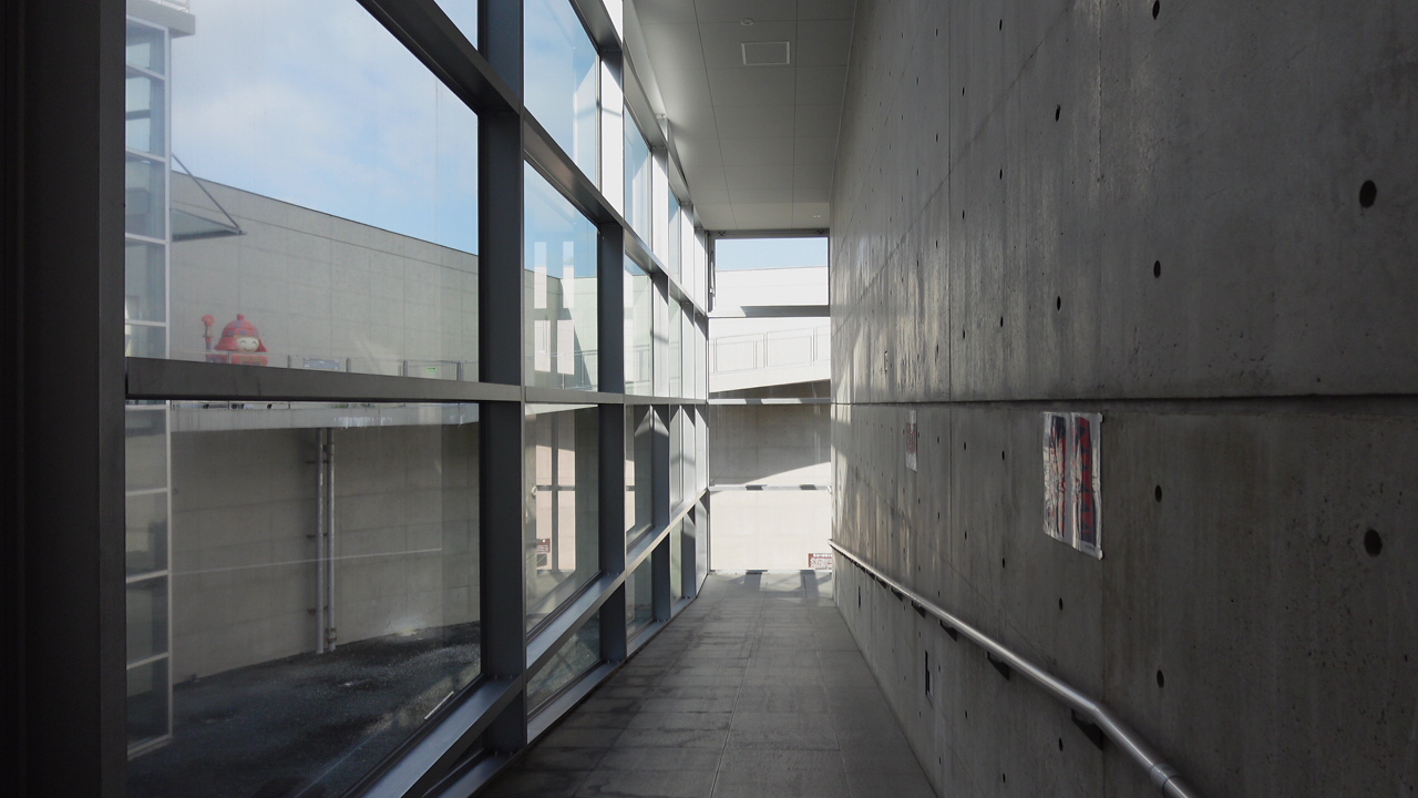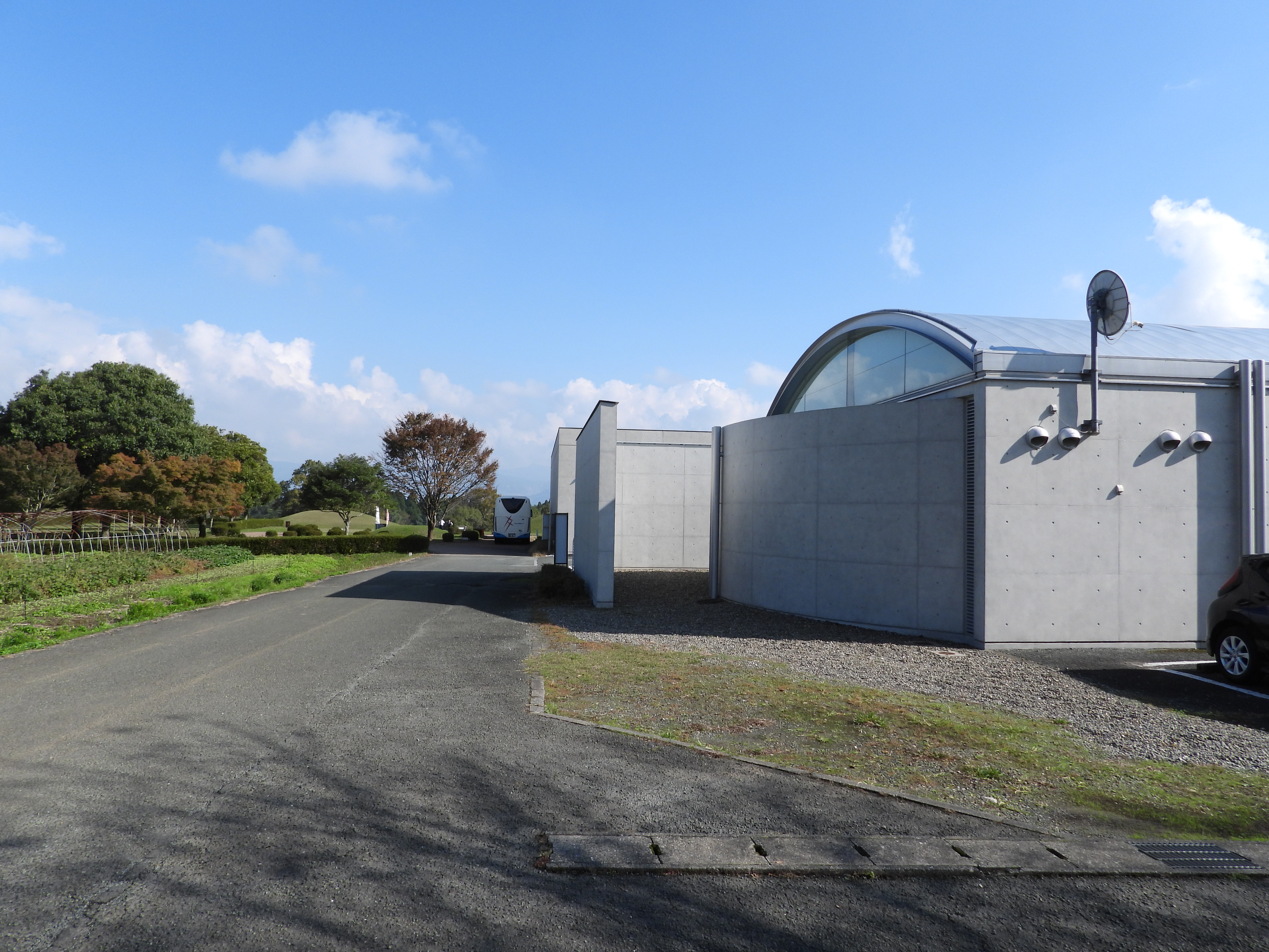 이쪽 방향이 고분관으로 집입하는 메인도로이다. 고객 주차장도 이곳에 있고. 그런데 그것보다 멀리서 봐도 안도 타다오風 디자인이 물씬 풍기는 조형물 비스무리한 것이 있어서 가 보았다.