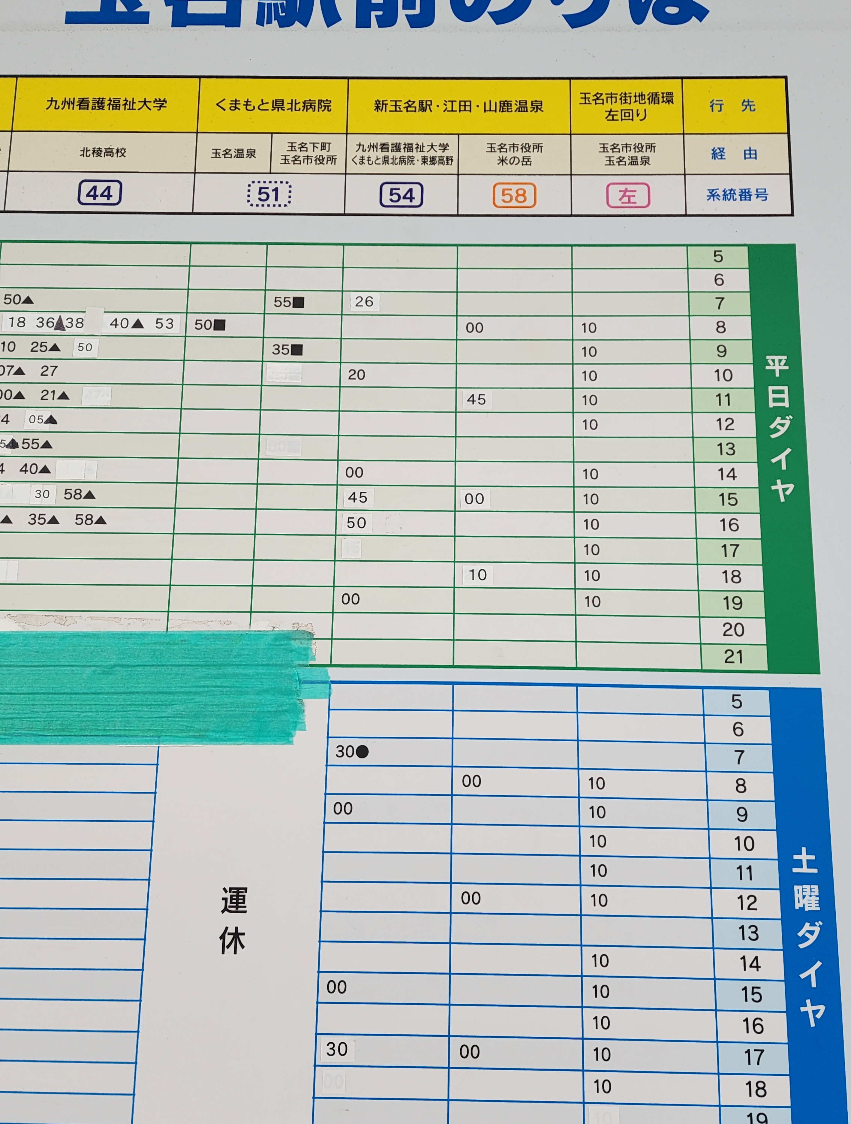 노선버스 시간표. 운행간격이 적어서 한번 놓치면 난감하다.