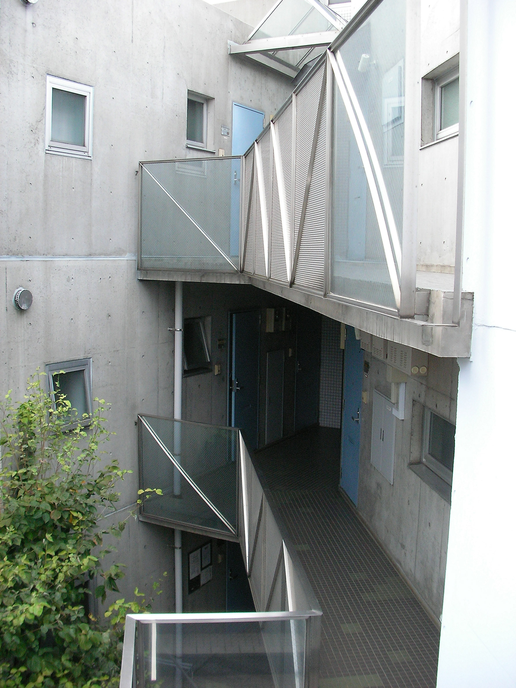 우선 각 주호를 구조상의 단위로 레이아웃하고, 공유부분을 옥외에 개방시켜 네가티브적인 보이드 공간으로 하므로써, 전체가 구심적으로 되버리는 것을 일부러 피하였다.